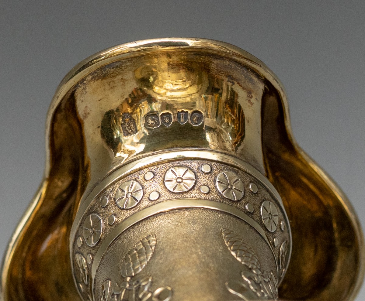 Entièrement poinçonné à l'intérieur du col : poinçon de fabricant, lion passant, tête de léopard (Londres), et lettre-date pour 1884.