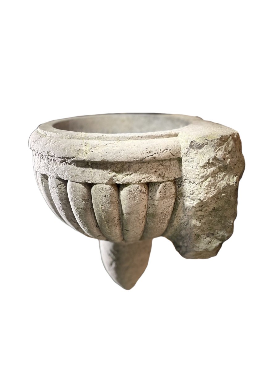 Ce bénitier de forme circulaire en pierre marbrière nous dit subtilement, beaucoup plus de choses qu'il n'y parait. C'est la magie de ces objets anciens, bien souvent élaborés avec une connaissance ancestrale que le monde a oublié.