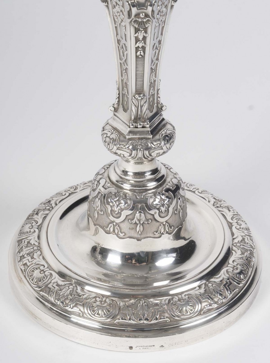 Une paire rare, idéale pour les collectionneurs d’orfèvrerie française et les amateurs de grandes pièces décoratives.