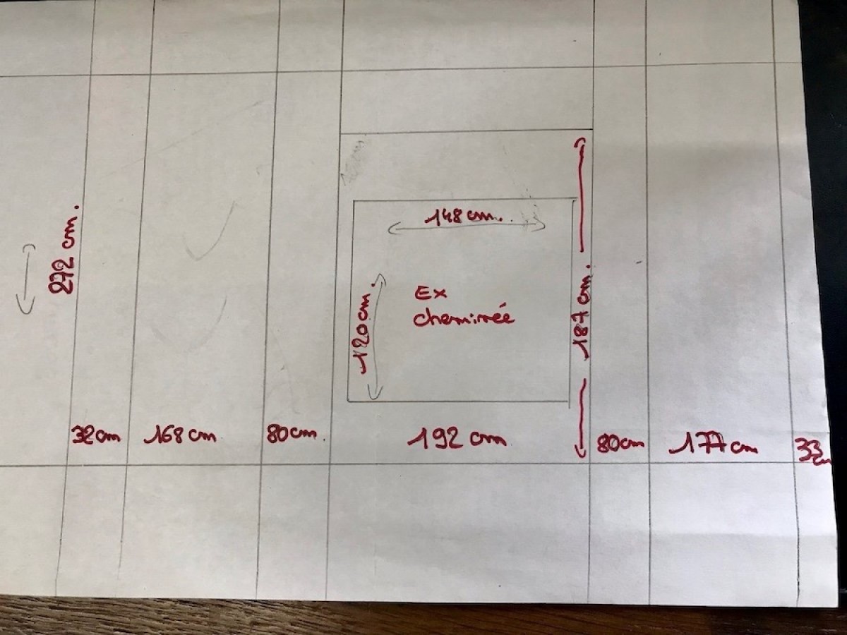 Il y a 7m65 de linéaire , adaptable. Il y a deux paires de portes sur charnière , pouvant être présentées ouvertes ou pouvant servir de rangement.