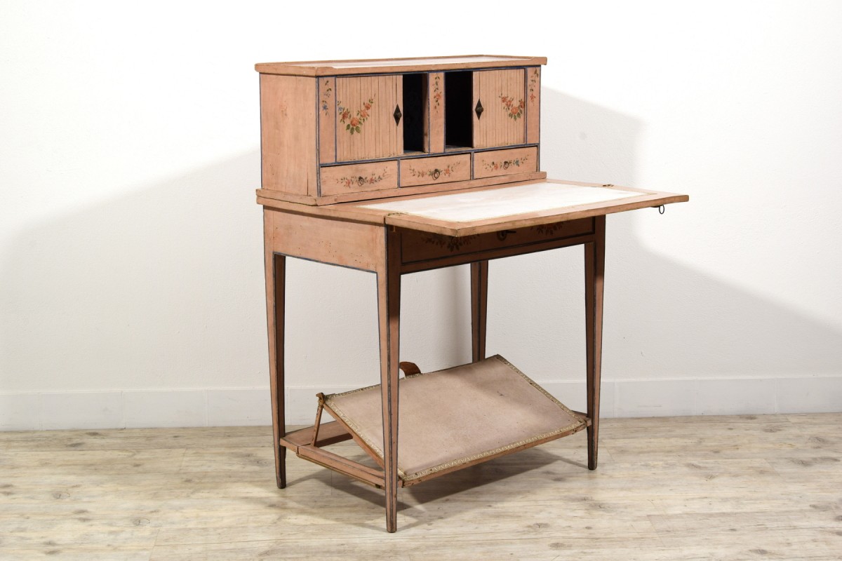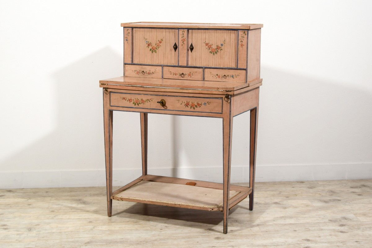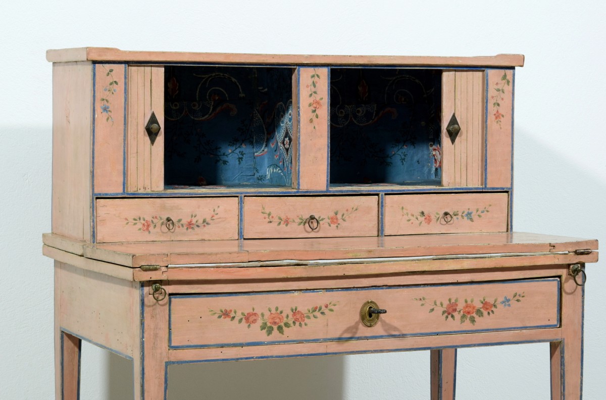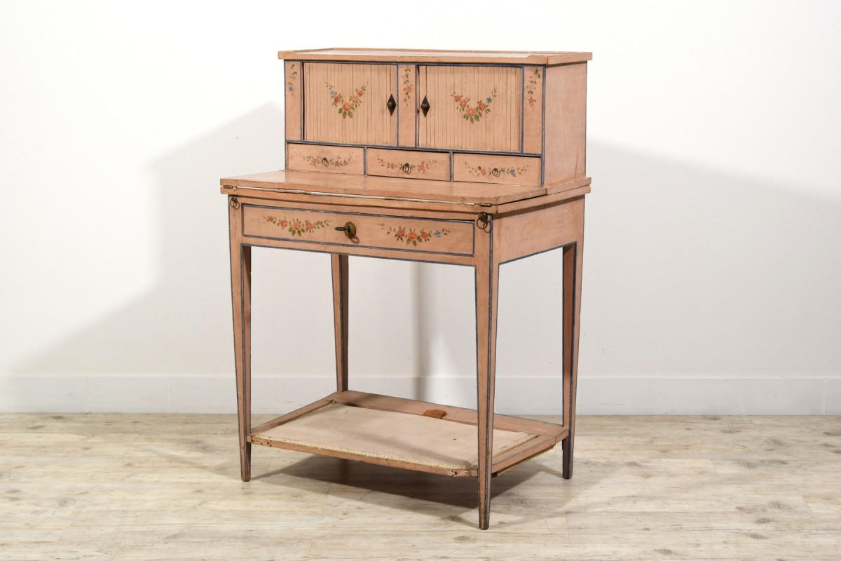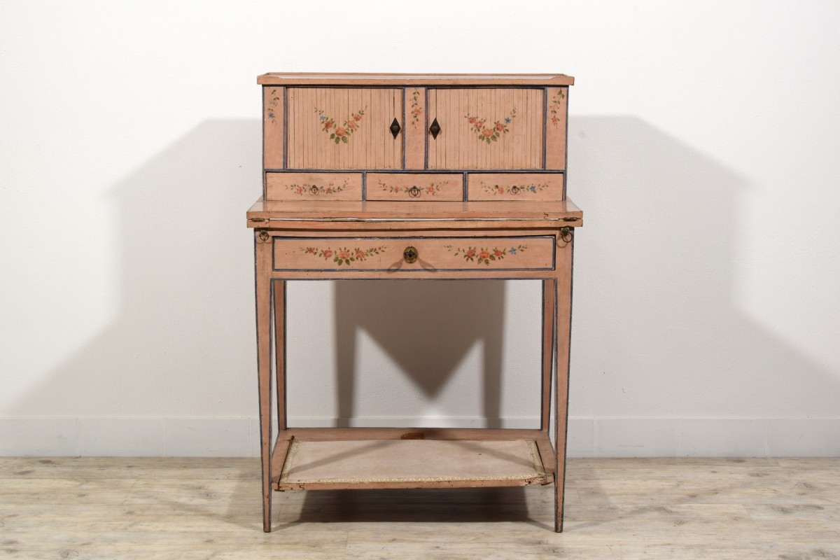 Retrouver le mobilier ou les objets d''art similaires à « Bonheur du jour en bois laqué, Italie fin du XVIIIe siècle » présenté par Brozzetti Antichità, antiquaire à Cherasco dans la catégorie Bureau et Secrétaire Louis XVI, Mobilier.