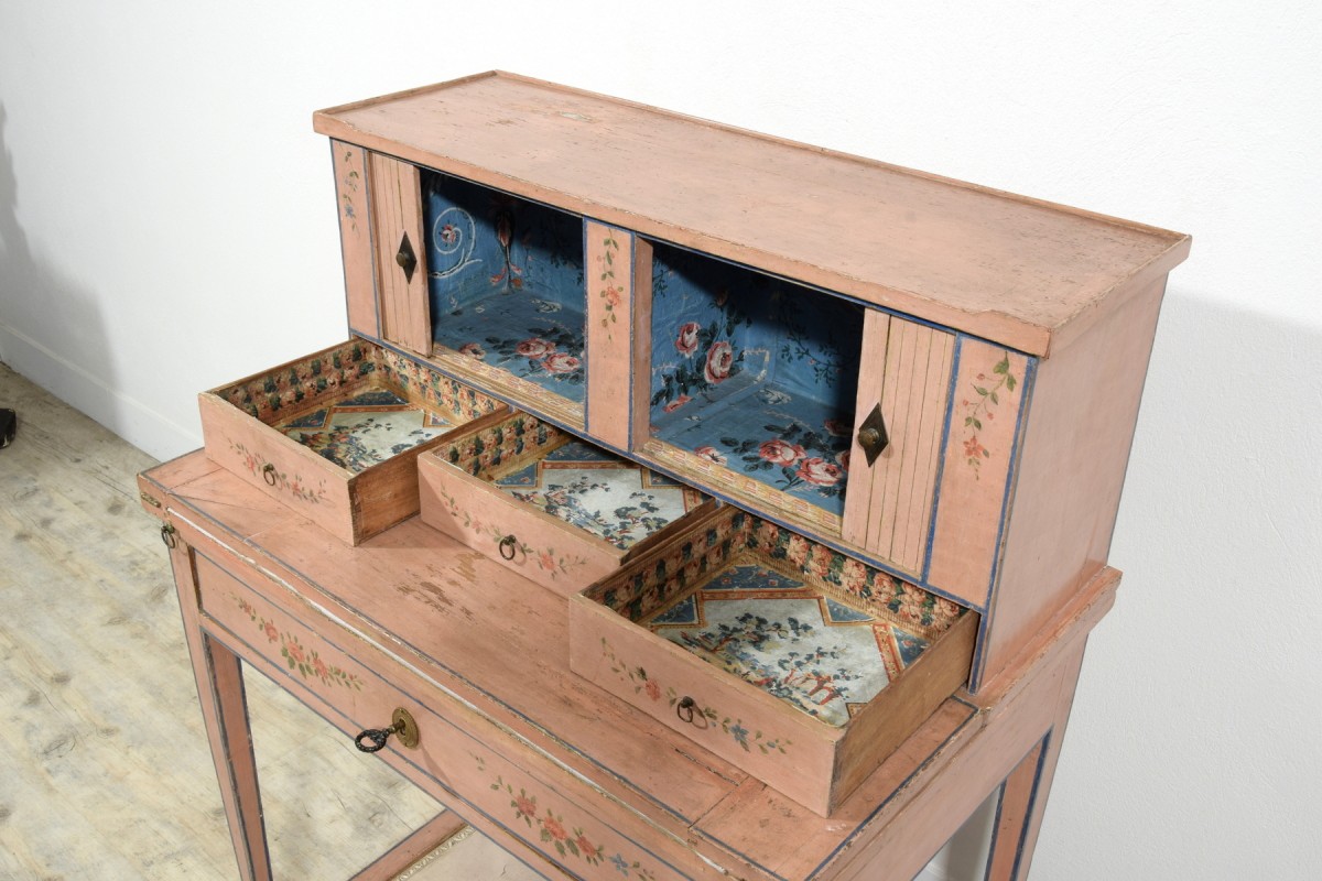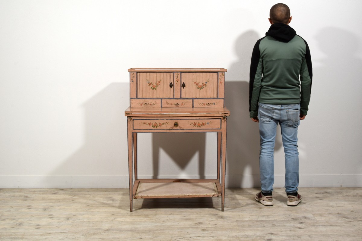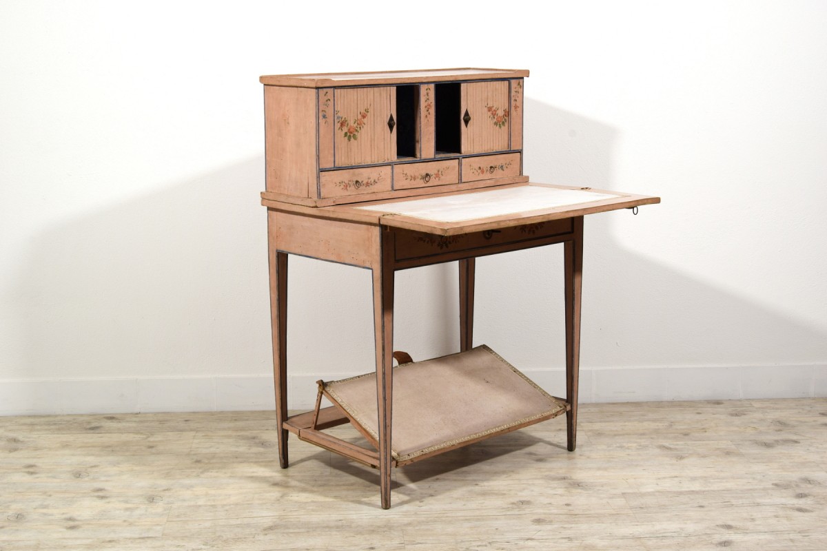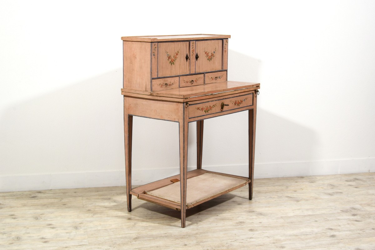 Retrouver le mobilier ou les objets d''art similaires à « Bonheur du jour en bois laqué, Italie fin du XVIIIe siècle » présenté par Brozzetti Antichità, antiquaire à Cherasco dans la catégorie Bureau et Secrétaire Louis XVI, Mobilier.