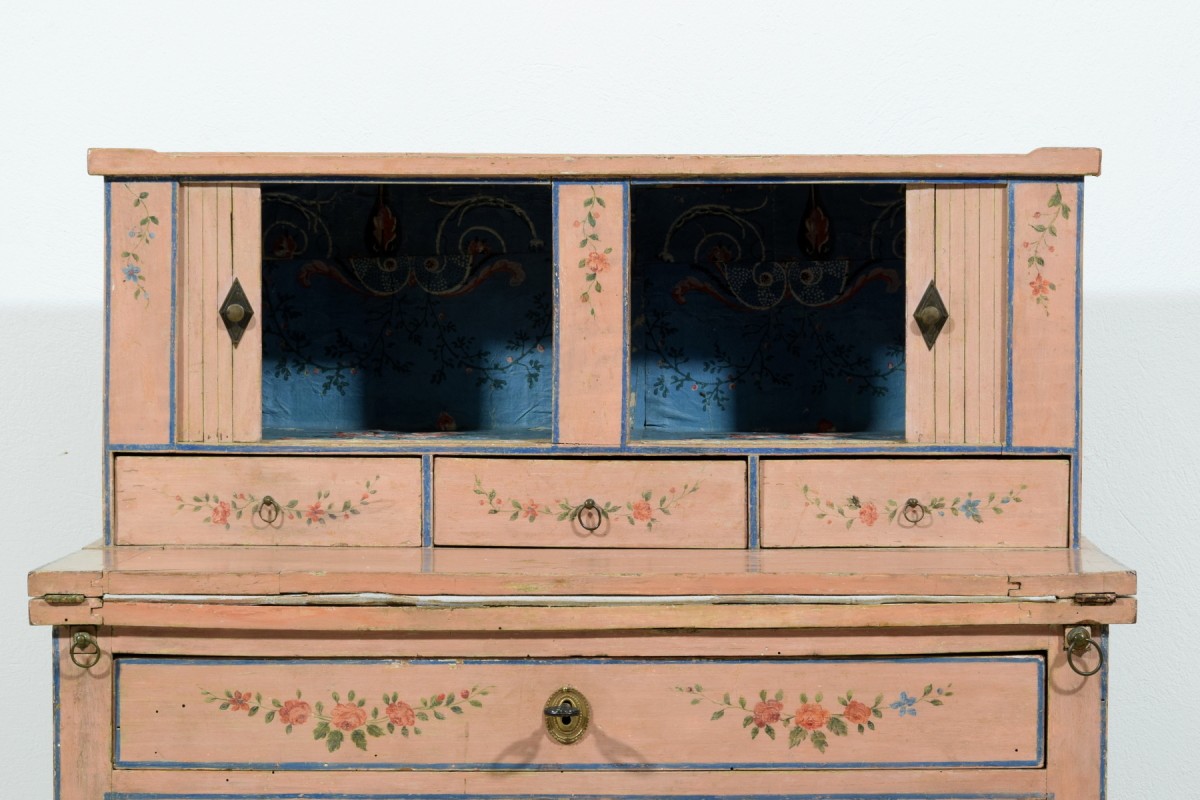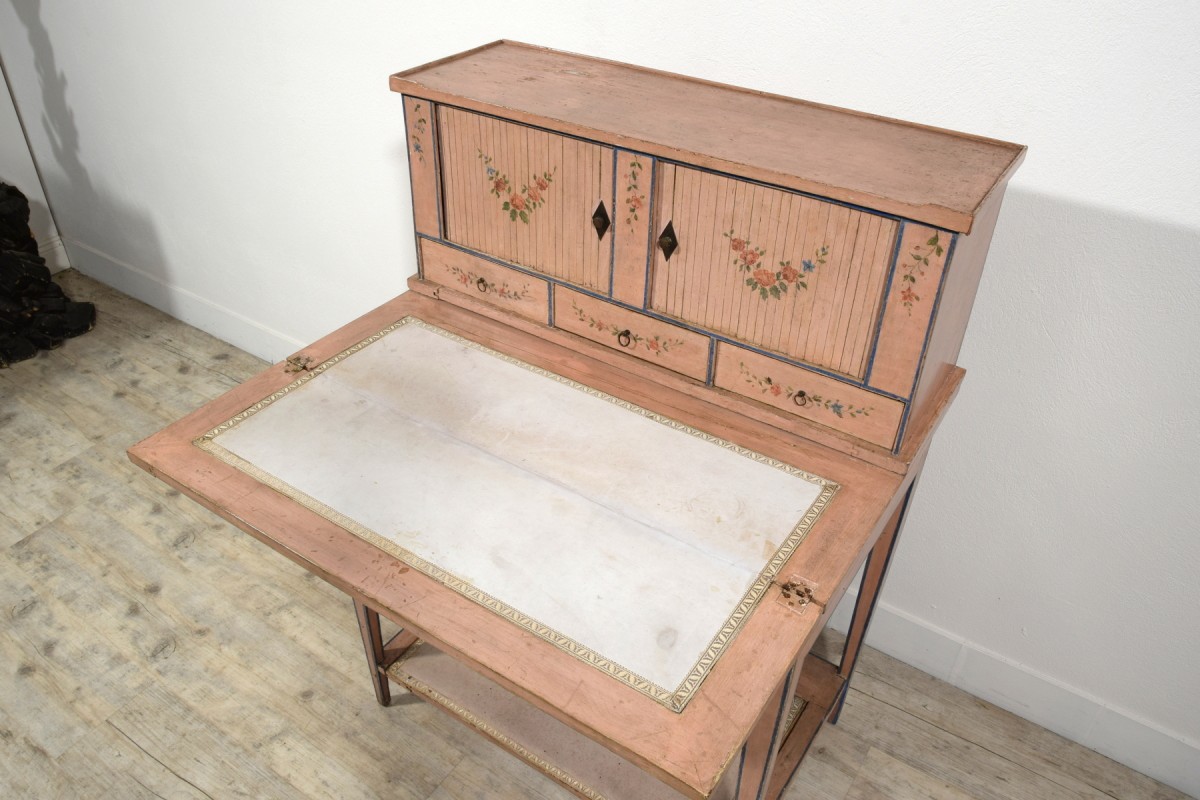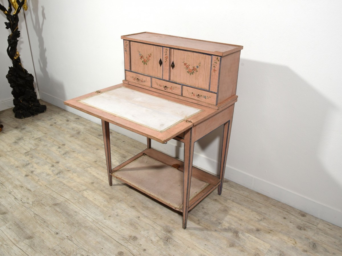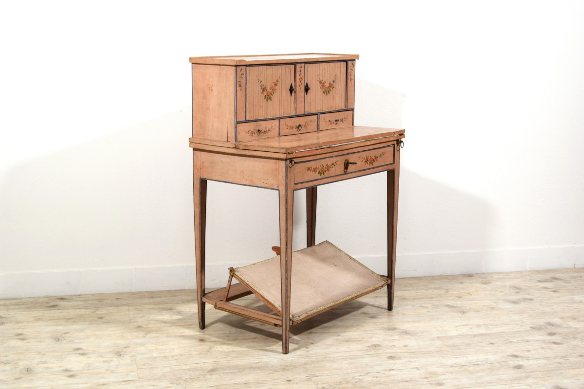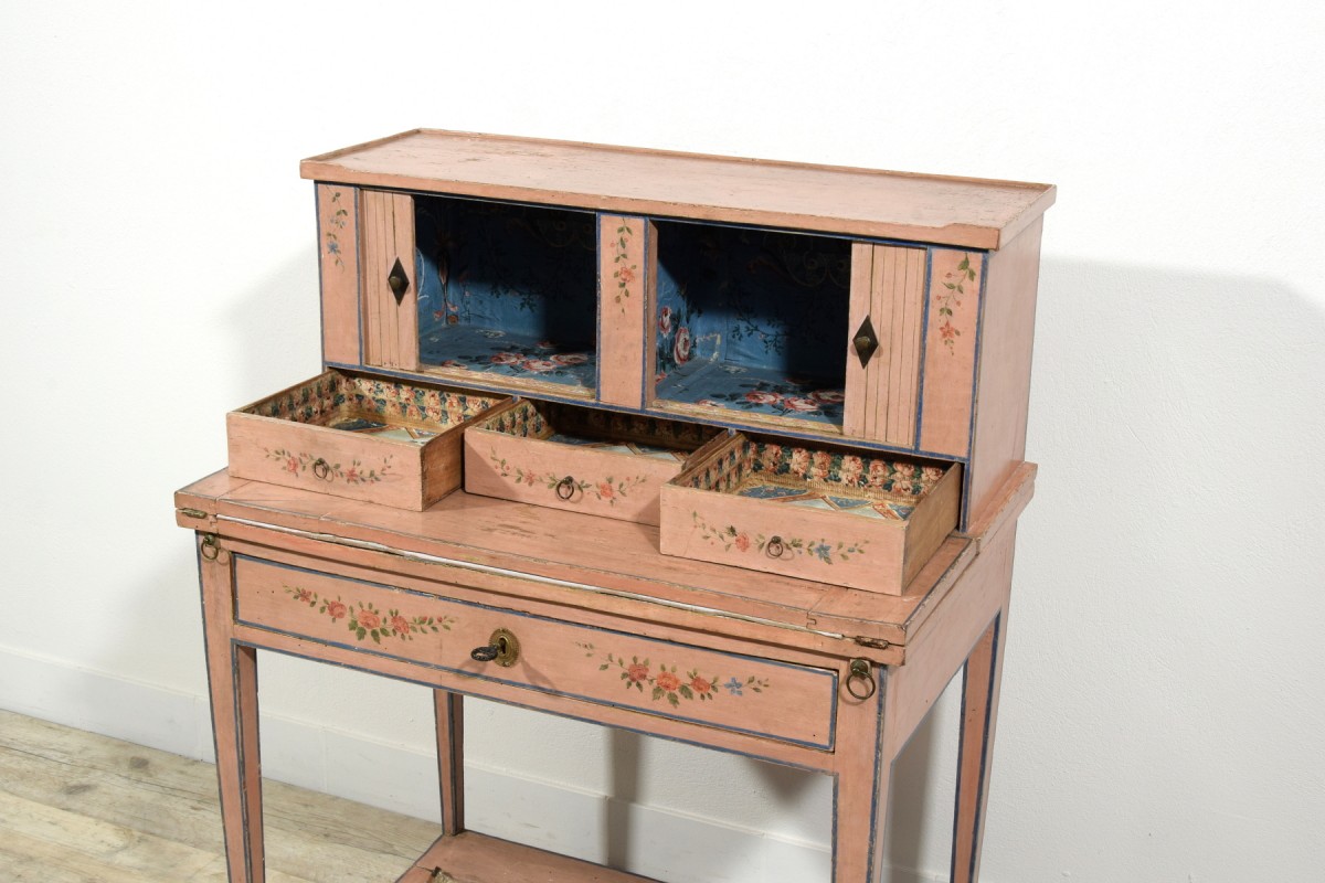 Retrouver le mobilier ou les objets d''art similaires à « Bonheur du jour en bois laqué, Italie fin du XVIIIe siècle » présenté par Brozzetti Antichità, antiquaire à Cherasco dans la catégorie Bureau et Secrétaire Louis XVI, Mobilier.