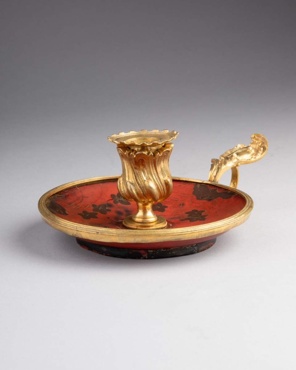 Retrouver le mobilier ou les objets d''art similaires à « Bougeoir à main en laque et bronze doré, Paris vers 1750 » présenté par Franck Baptiste Paris, antiquaire à Paris dans la catégorie Bougeoirs et Chandeliers Louis XV, Luminaires.