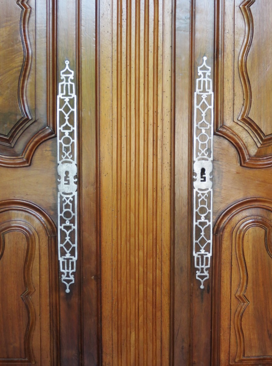 Ses dimensions sont raisonnables pour un buffet deux corps Louis XV, sa hauteur est de 244 cm, sa profondeur de 67 cm et sa largeur de 166 cm.
