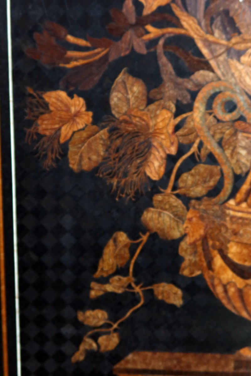 Cabinet en bois noirci et marqueterie de bois indigènes . Celui ci est facilement attribuable à la célébre maison Charles Hunsinger et Wagner qui était à l'époque des spécialistes de ce genre de mobilier. Une marqueterie composée d'un pot à feu sur pied douche 1. avec un important mélange de bois précieux . le musée d'Orsay possède un cabinet de ces ébénistes. Un intérieur très soigné en loupe d'orme sur ce meuble de grande qualité.