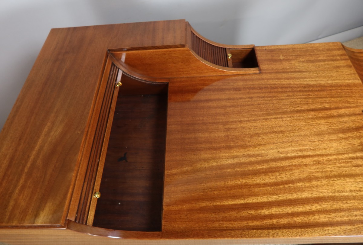 Bureau Art Déco en acajou dans le goût de Maurice Dufrène. Ce modèle très original et néanmoins