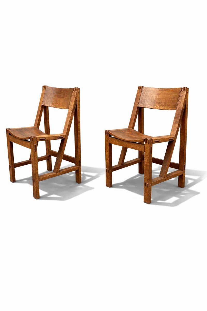 Retrouver le mobilier ou les objets d''art similaires à « Bureau en chêne de la fin des années 70 de Giuseppe Rivadossi avec deux chaises » présenté par Herwig Simons Fine Arts, antiquaire à Bruxelles dans la catégorie Bureau et Secrétaire Années 50-60, Mobilier.