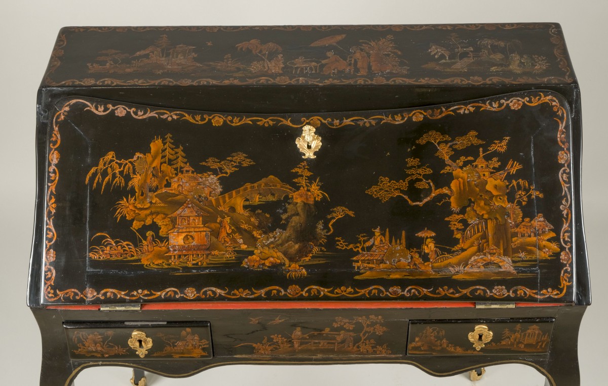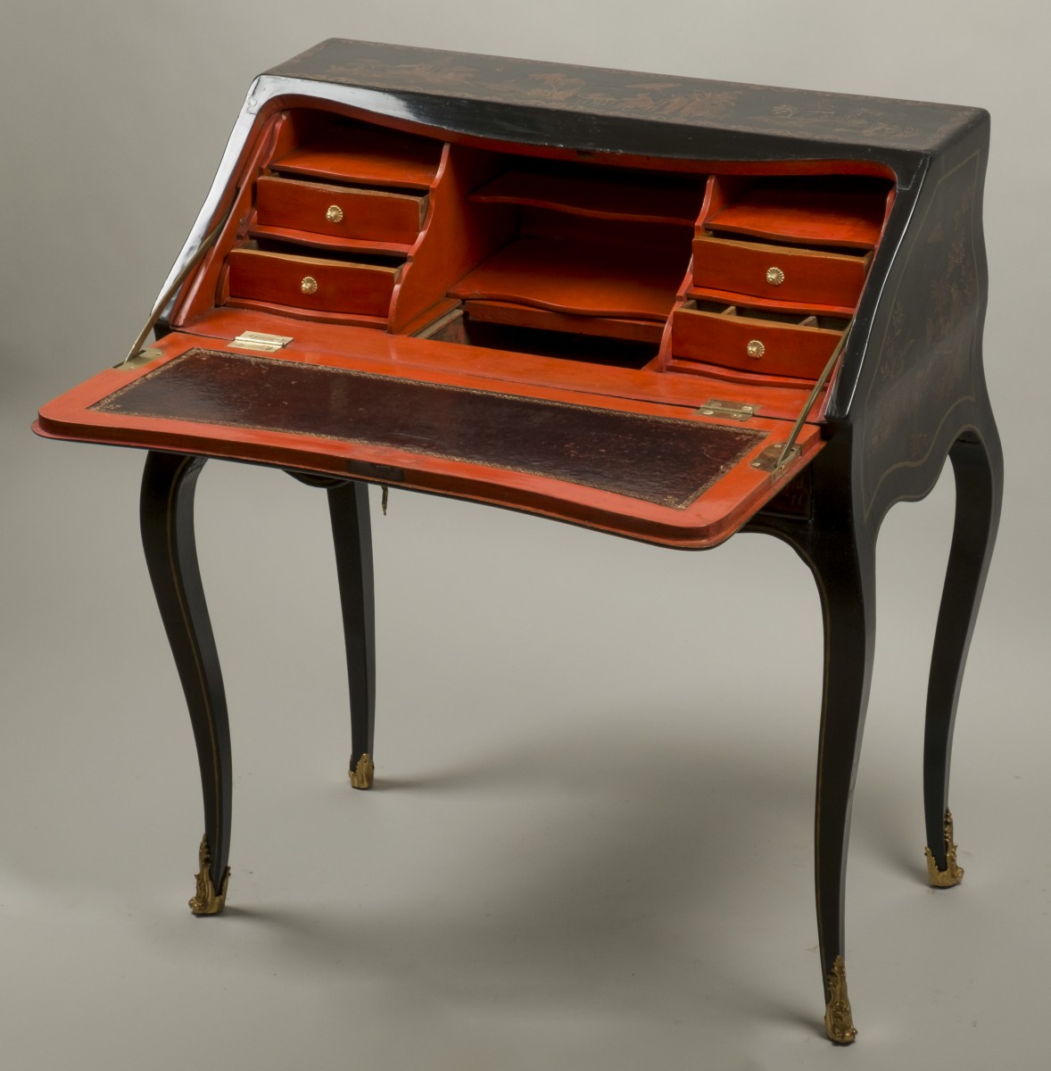 Retrouver le mobilier ou les objets d''art similaires à « Bureau dos d'âne en vernis européen » présenté par Galerie Gilles Linossier, antiquaire à Paris dans la catégorie Bureau et Secrétaire Louis XV, Mobilier.