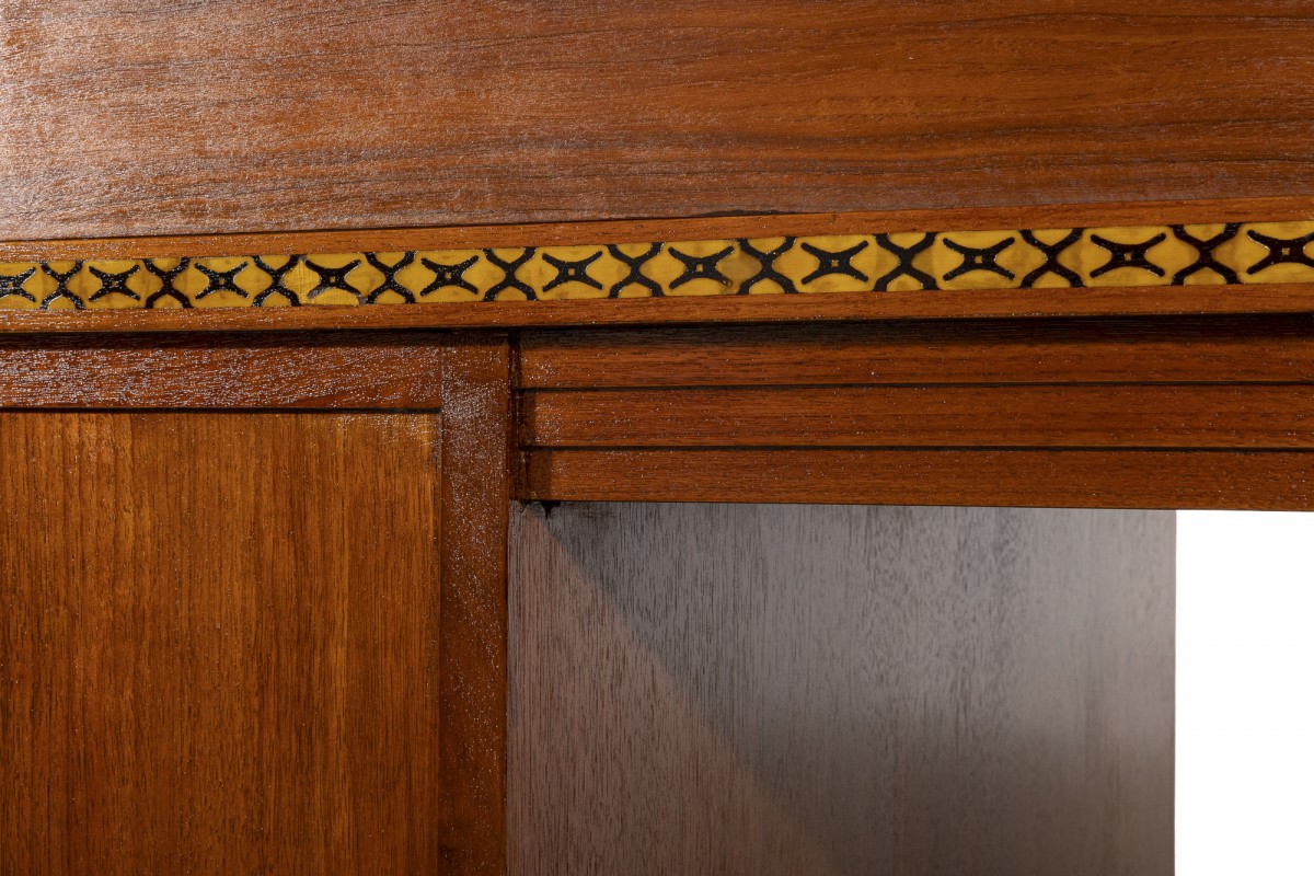 accessoires d'origine et les serrures sont marquées des initiales du fabricant de meubles. Conformément au style d'Olbrich, notre bureau est fabriqué à partir des bois les plus nobles, tels que l'ébène, le noyer américain et l'ébène de Macassar.