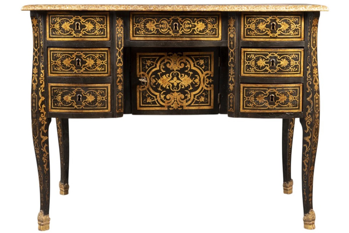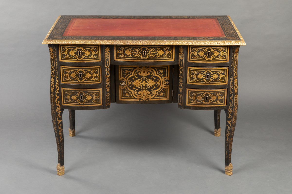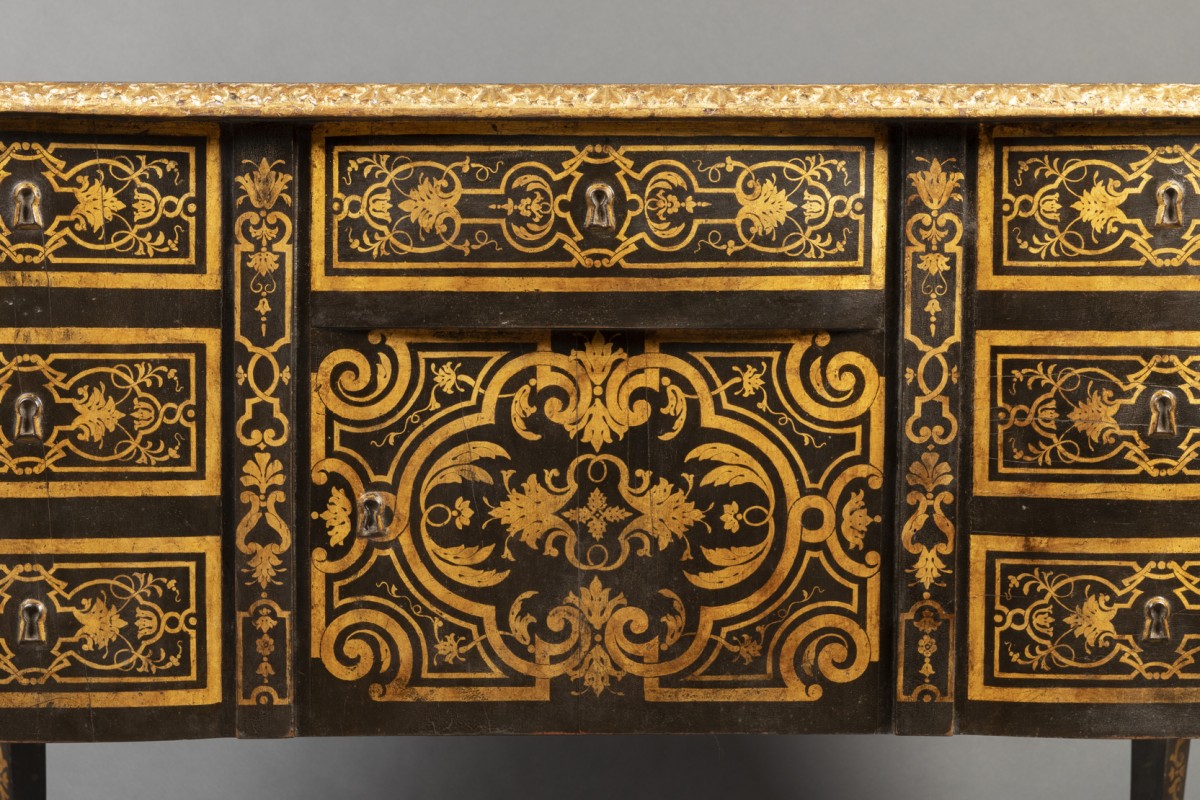 Retrouver le mobilier ou les objets d''art similaires à « Bureau Mazarin en laque à l’imitation de la marqueterie Boulle , époque Louis XIV » présenté par Franck Baptiste Paris, antiquaire à Paris dans la catégorie Bureau et Secrétaire Louis XIV, Mobilier.