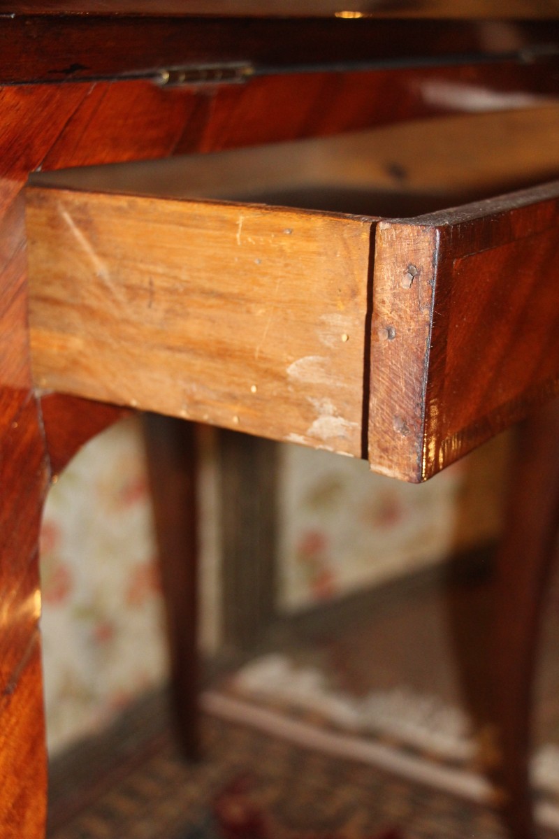 L'intérieur est pourvu de trois petits tiroirs dont un avec les encriers.