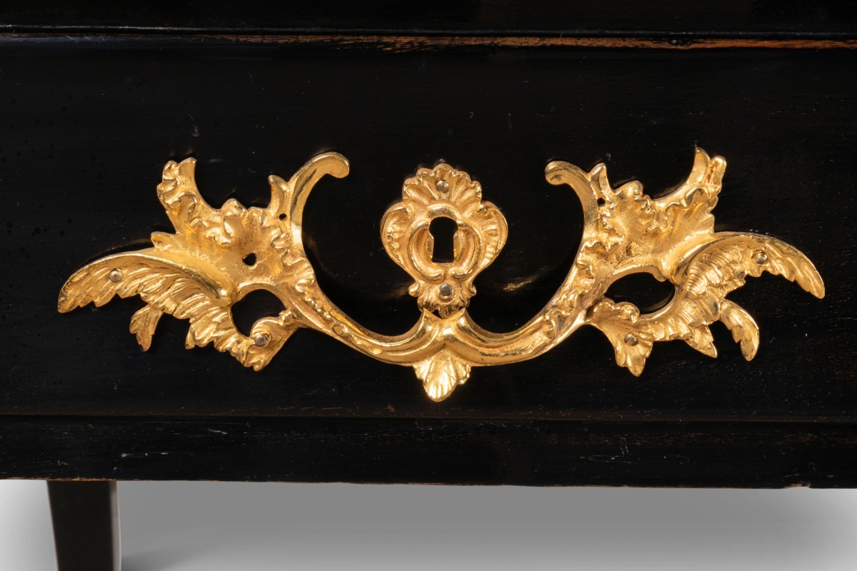 Retrouver le mobilier ou les objets d''art similaires à « Bureau plat en bois noirci d'époque Louis XV estampillé G.CORDIÉ » présenté par Galerie Philippe Guegan, antiquaire à Paris dans la catégorie Bureau et Secrétaire Louis XV, Mobilier.