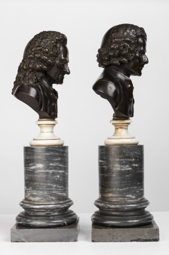 Paire de bustes en bronze à patine brune représentant :