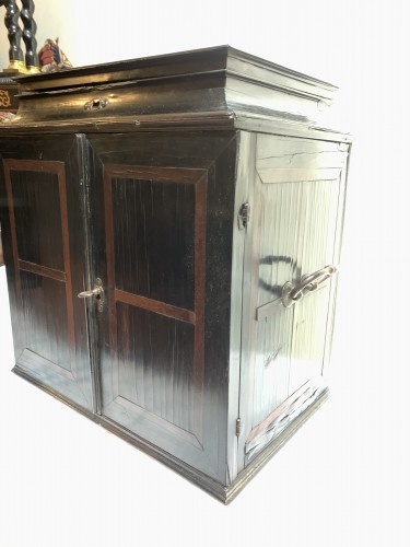 Retrouver le mobilier ou les objets d''art similaires à « Cabinet Anversois en ébène et broderies » présenté par Arnaud Huppé-Chambon, antiquaire à Nice dans la catégorie Cabinet & Coffre Louis XIII, Mobilier.