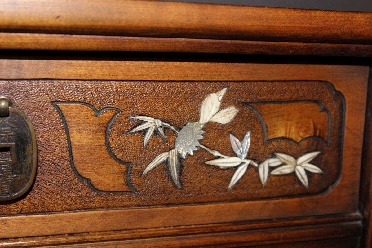 Retrouver le mobilier ou les objets d''art similaires à « Cabinet dans le goût du Japon signé Bastet à Lyon vers 1900 » présenté par Antiquités Christophe Rochet, antiquaire à Villeurbanne dans la catégorie Cabinet & Coffre Art nouveau, Mobilier.