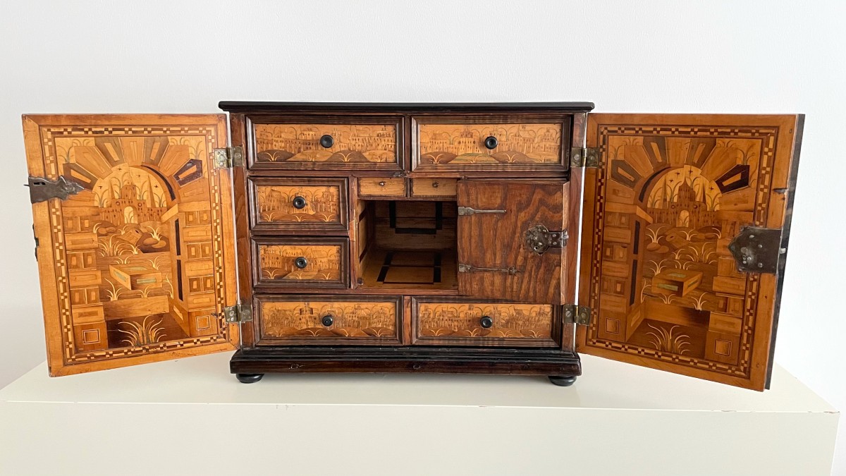 Retrouver le mobilier ou les objets d''art similaires à « Cabinet Marqueté d'Augsbourg » présenté par Torkild, antiquaire à Bruxelles dans la catégorie Cabinet & Coffre Louis XIII, Mobilier.