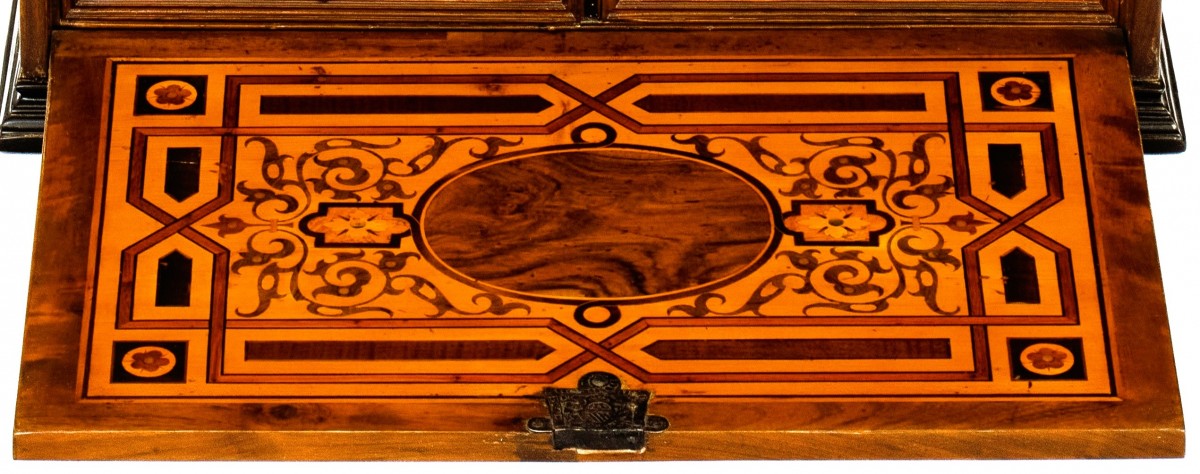 Le cabinet à monnaies a toujours été considéré comme le meuble le plus rare et le plus précieux de l'histoire du mobilier ancien, un objet emblématique qui distinguait les familles les plus riches et les plus puissantes, et un incontournable des grands appartements d'apparat.