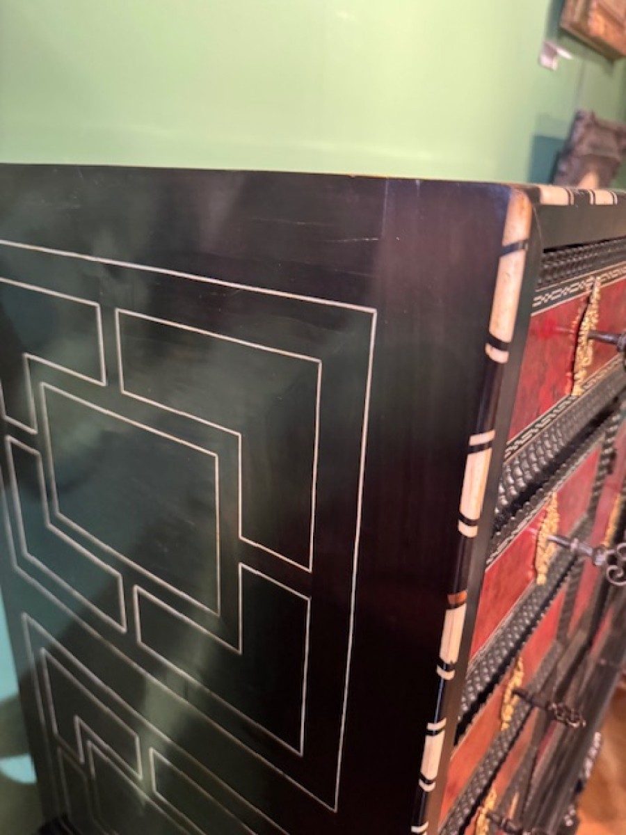 Les côtés sont décorés de filets d'os en composition géométrique.