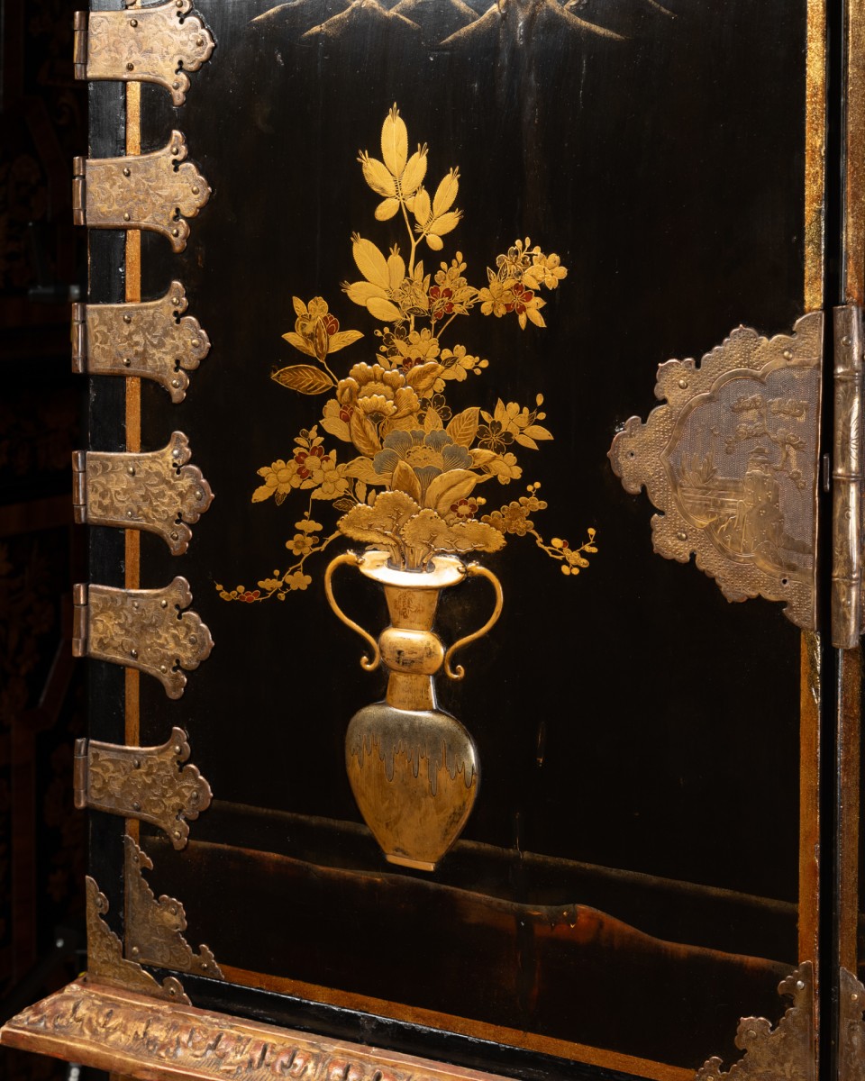 Cabinet de voyage en laque du Japon ouvrant par deux vantaux.
