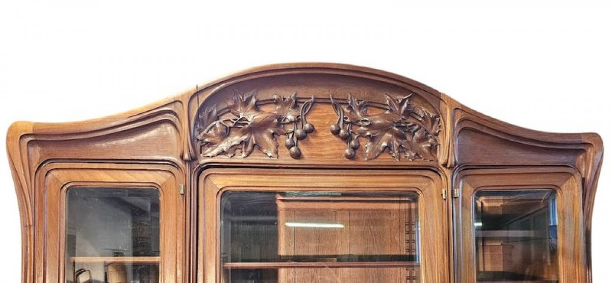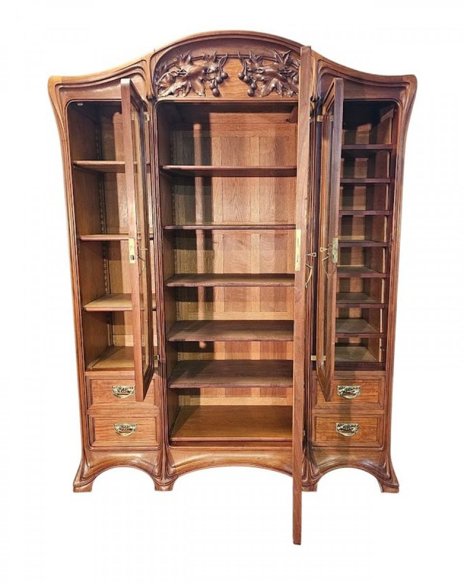 Retrouver le mobilier ou les objets d''art similaires à « Camille Gauthier - Bibliothèque Art nouveau "Feuilles de Platanes" » présenté par Antiquités Art Nouveau, antiquaire à Nancy dans la catégorie Bibliothéque, vitrine Art nouveau, Mobilier.