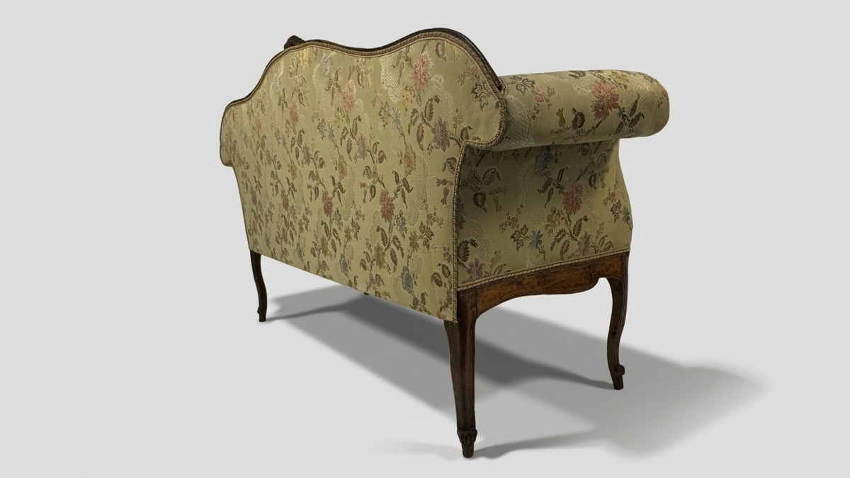 Retrouver le mobilier ou les objets d''art similaires à « Canapé à dossier incurvé en noyer, Lombardie XVIIIe siècle » présenté par Antichità Giglio, antiquaire à Milano dans la catégorie Canapé & Mobilier de Salon Louis XV, Sièges.