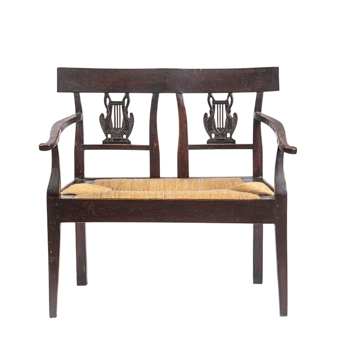 etit canapé, XVIIIe siècle en noyer avec dossier ajouré, assise en paille, cm L92xP53xH88