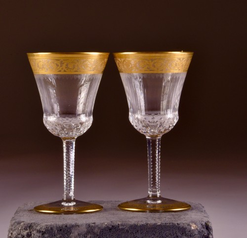 Ces pièces richement décorées proviennent de Saint-Louis, la plus ancienne cristallerie de France (depuis 1586) et une verrerie royale depuis 1767.