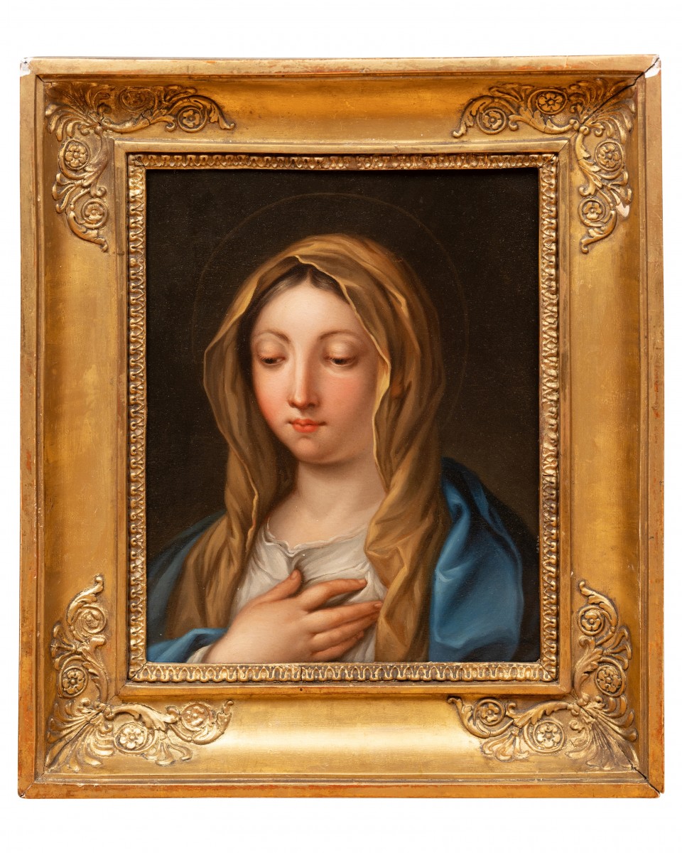 Retrouver le mobilier ou les objets d''art similaires à « Carlo Maratti (1625-1713) et école – La Vierge Marie » présenté par Galerie Magdeleine, antiquaire à Paris dans la catégorie Tableaux XVIIIe siècle Louis XIV, Tableaux et dessins.