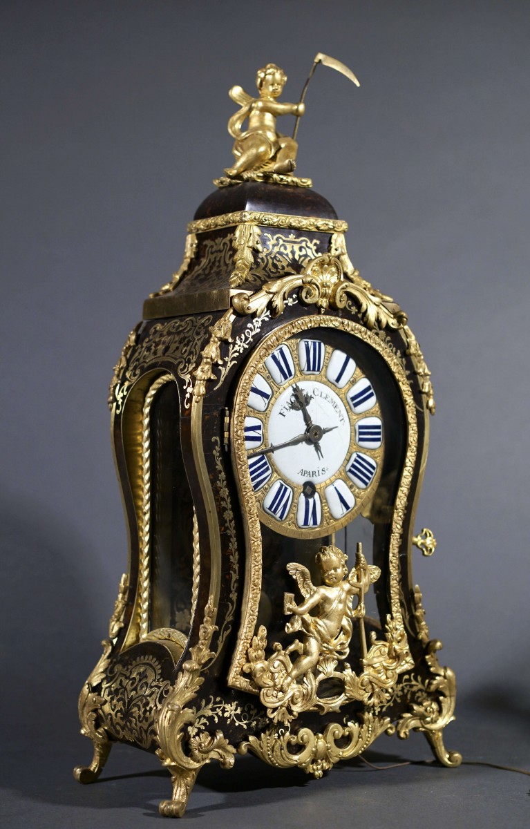 Biographie: Fiacre Clément (décédé à Paris en 1758). Il fut l'un des plus importants horlogers parisiens de la première moitié du XVIIIe siècle. Après son ordination comme maître horloger le 16 janvier 1714, il acquit une grande renommée et établit son propre atelier rue Saint-Denis vers le milieu des années 1740 (voir Tardy, Dictionnaire des horlogers français, Paris, 1971, p. 131). Deux de ses fils, Fiacre François et Claude, poursuivirent l'activité de l'atelier paternel jusqu'au début du règne de Louis XVI.