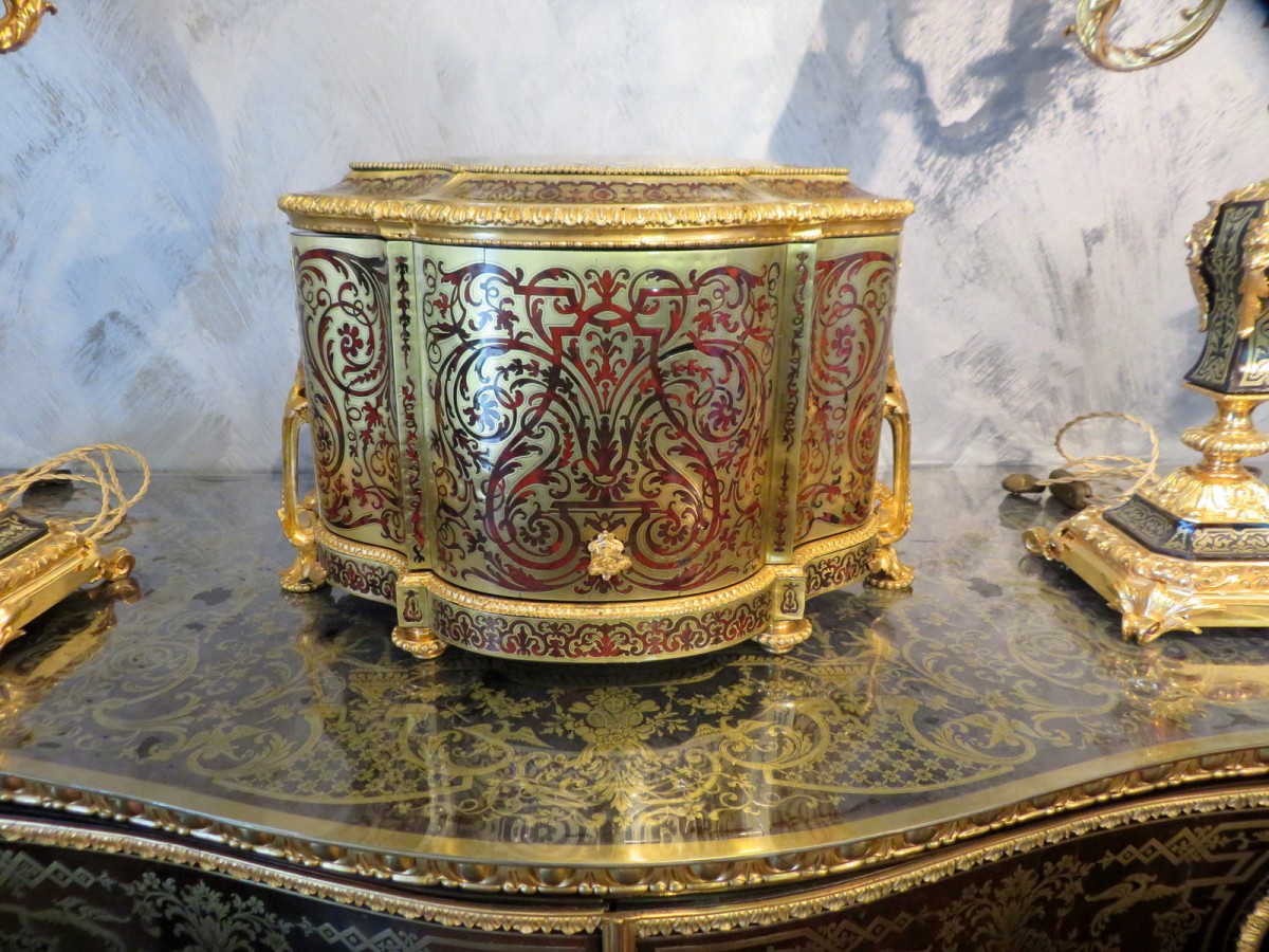 Retrouver le mobilier ou les objets d''art similaires à « Cave à liqueur avec six carafes en marqueterie Boulle toutes faces époque Napoléon III » présenté par Antiquités Biau, antiquaire à Manduel dans la catégorie Cave à liqueur Napoléon III, Objet de décoration.