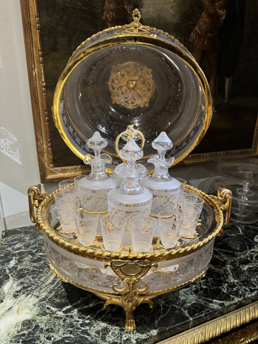 Retrouver le mobilier ou les objets d''art similaires à « Cave à liqueurNapoléon III en bronze et cristal » présenté par Antiquités Simon, antiquaire à Saint ouen sur Seine dans la catégorie Coffret & Nécessaire Napoléon III, Objets de Vitrine.