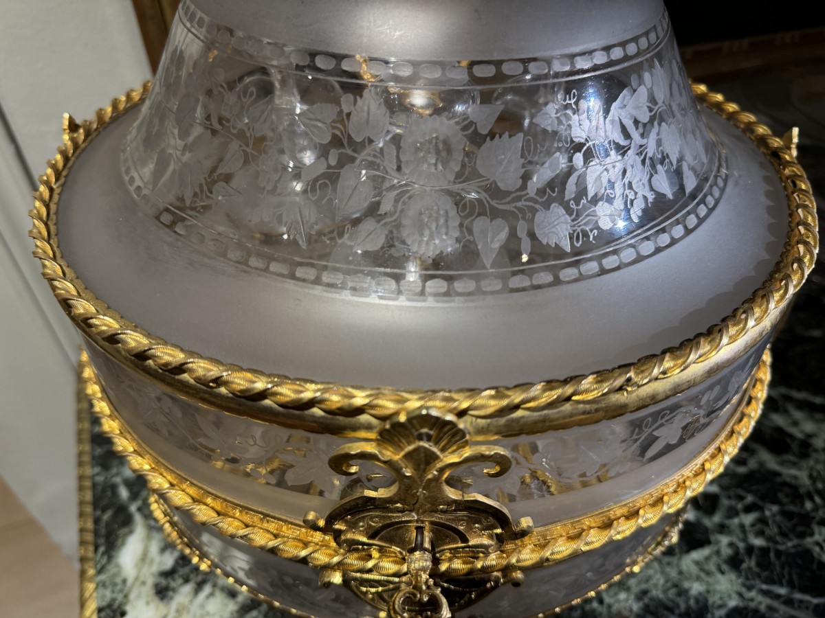 Rare cave à liqueurs de forme circulaire en cristal degagé a l'acide.