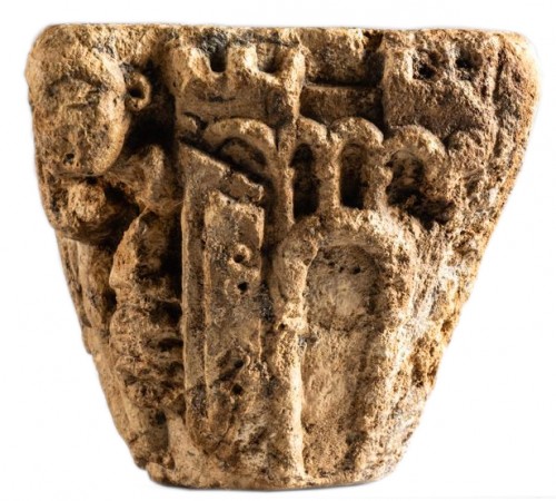 Retrouver le mobilier ou les objets d''art similaires à « Chapiteau historié roman représentant Jonas et le grand poisson, vers 1160-1180 » présenté par La Sculpture Françoise, antiquaire à Paris dans la catégorie Sculpture en Marbre Moyen Âge, Sculpture.