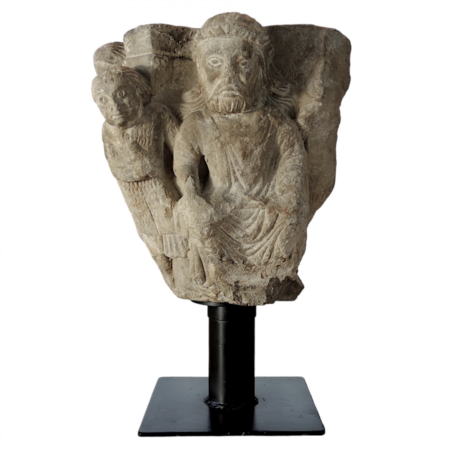 Retrouver le mobilier ou les objets d''art similaires à « Chapiteau roman historié provençal, Hérode et le Massacre des Innocents » présenté par Galerie Ekinium, antiquaire à Paris dans la catégorie Sculpture en pierre Moyen Âge, Sculpture.
