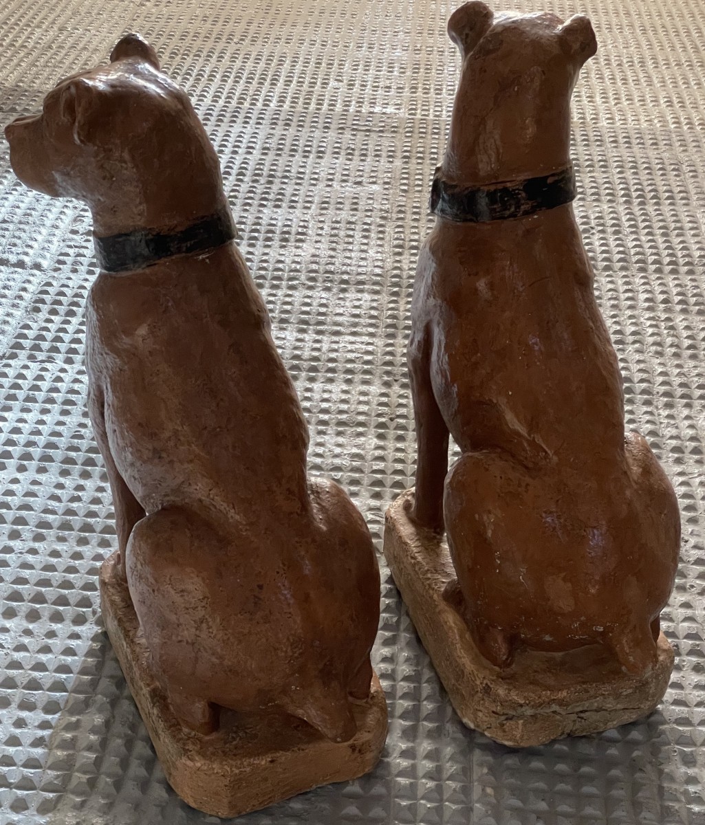 Chiens En Pierre Recontituée Et Peinte. XIXème Siècle