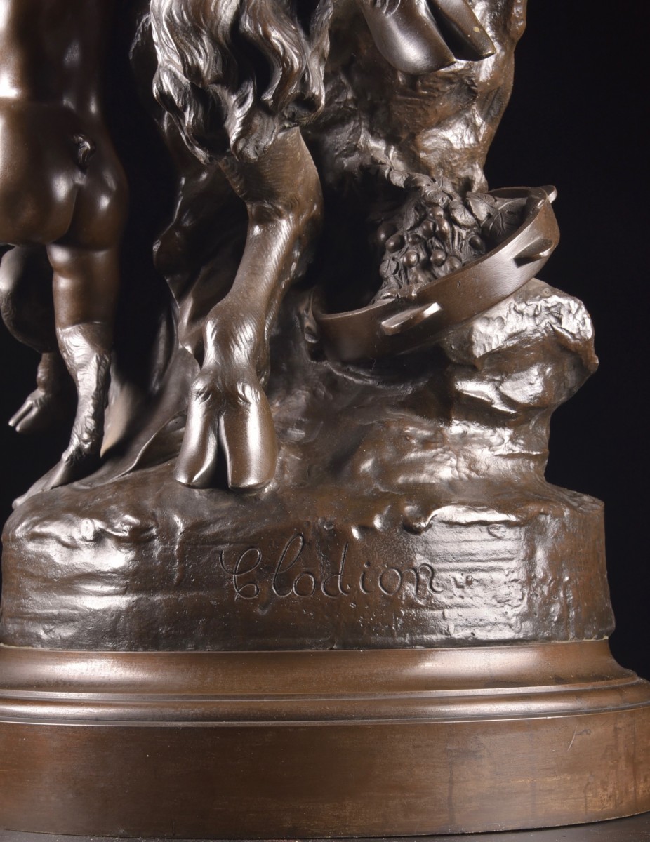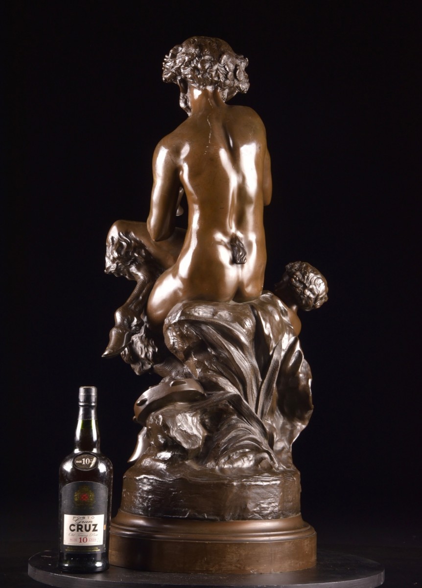 ... du renouveau néoclassique et de l’esprit rococo tardif qui ont fait de Clodion l’un des sculpteurs les plus admirés de son époque. Ses interprétations sensuelles et vivantes de sujets mythologiques sont célèbres pour leur grâce, leur mouvement et leur élégance décorative. Signée et exécutée selon les plus hauts standards, cette sculpture impressionnante représente une opportunité rare d’acquérir une pièce d’une grande valeur artistique — idéale pour un intérieur raffiné ou une collection exigeante de bronzes européens.