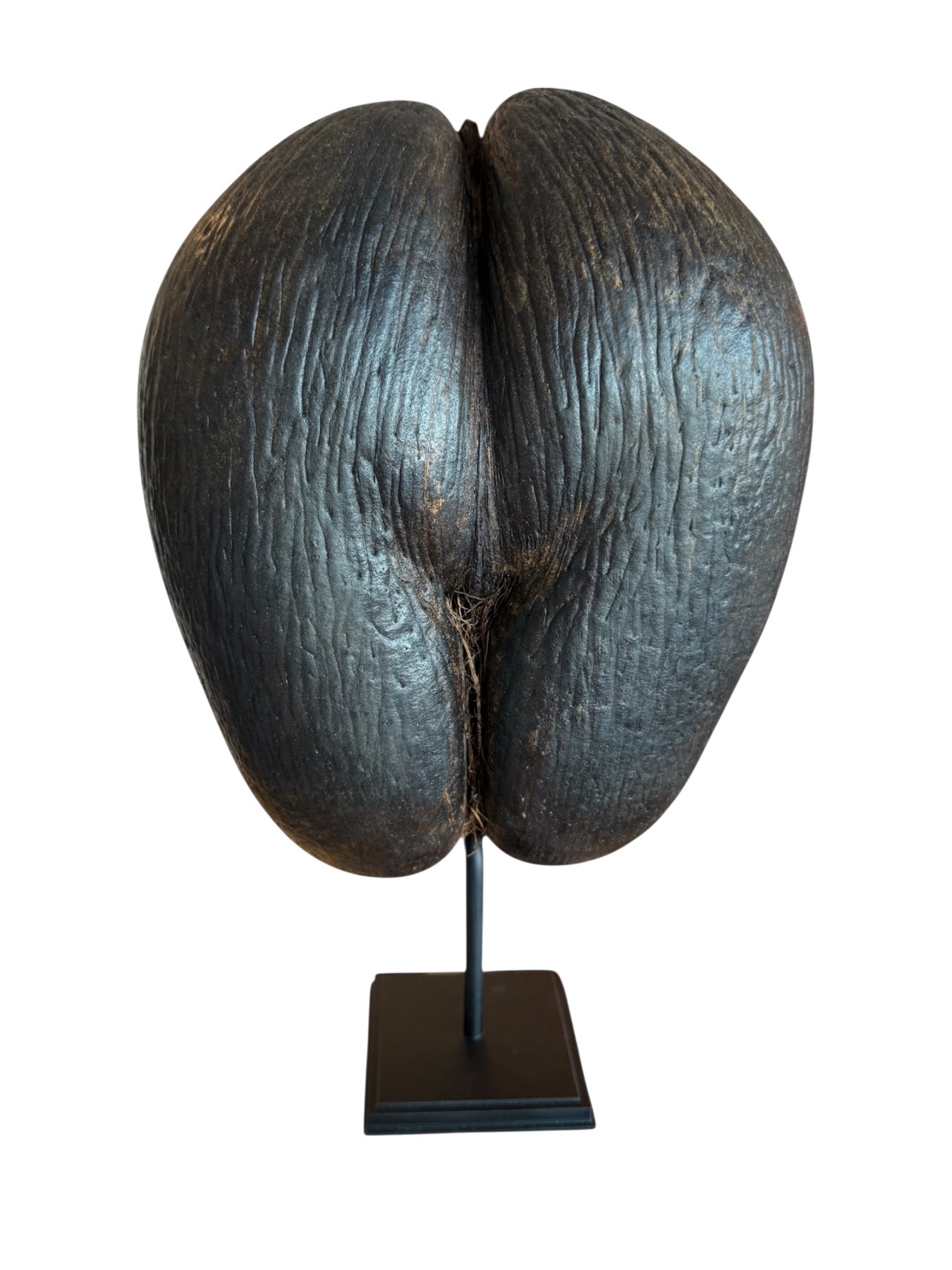 Coco de Mer exceptionnel originaire des Îles des Seychelles, présenté sur un socle.