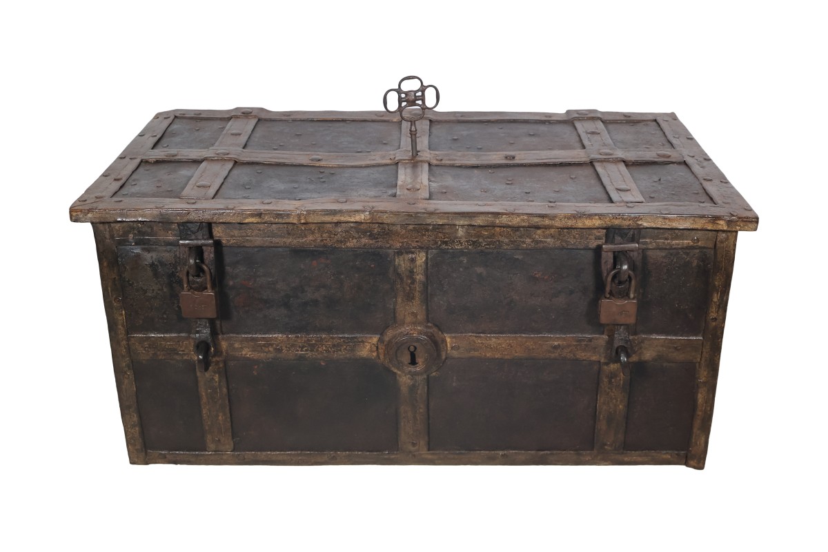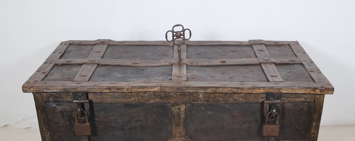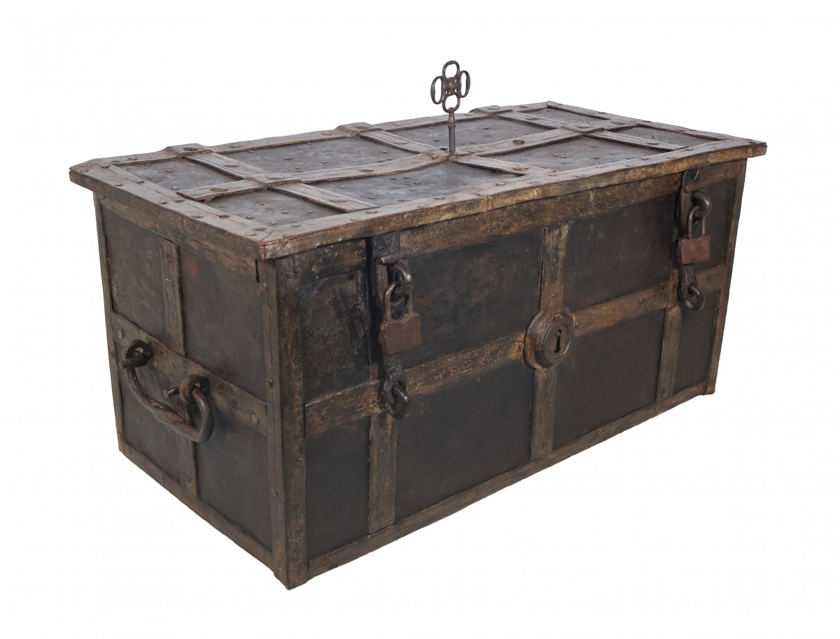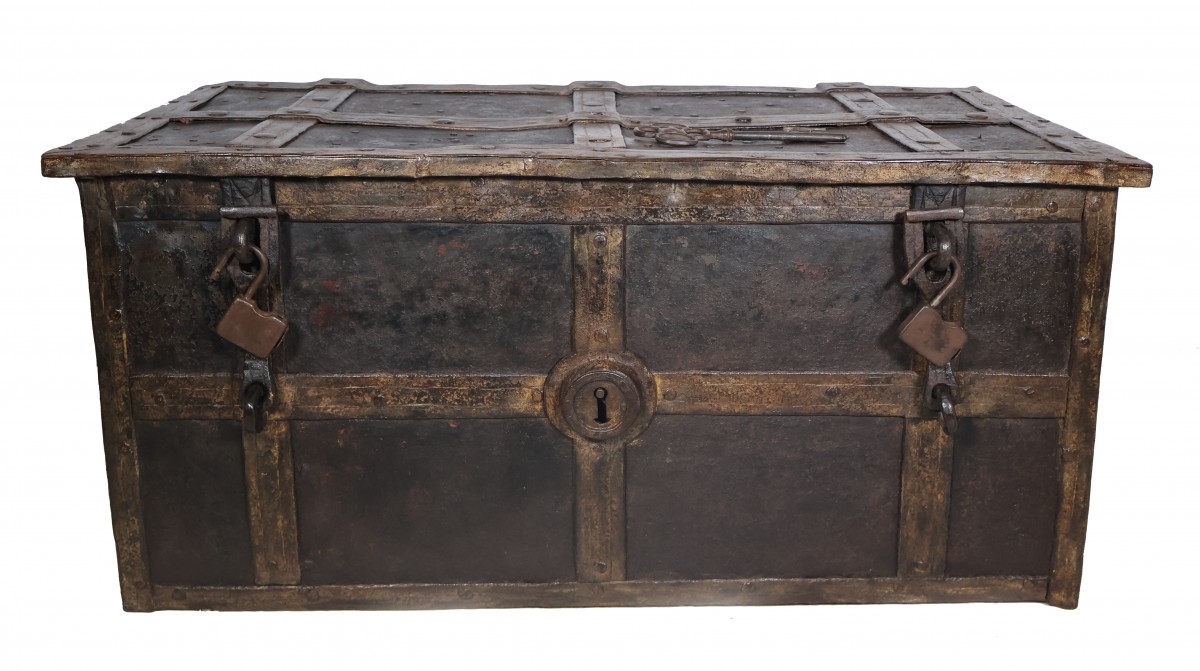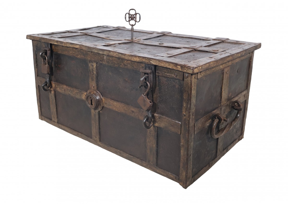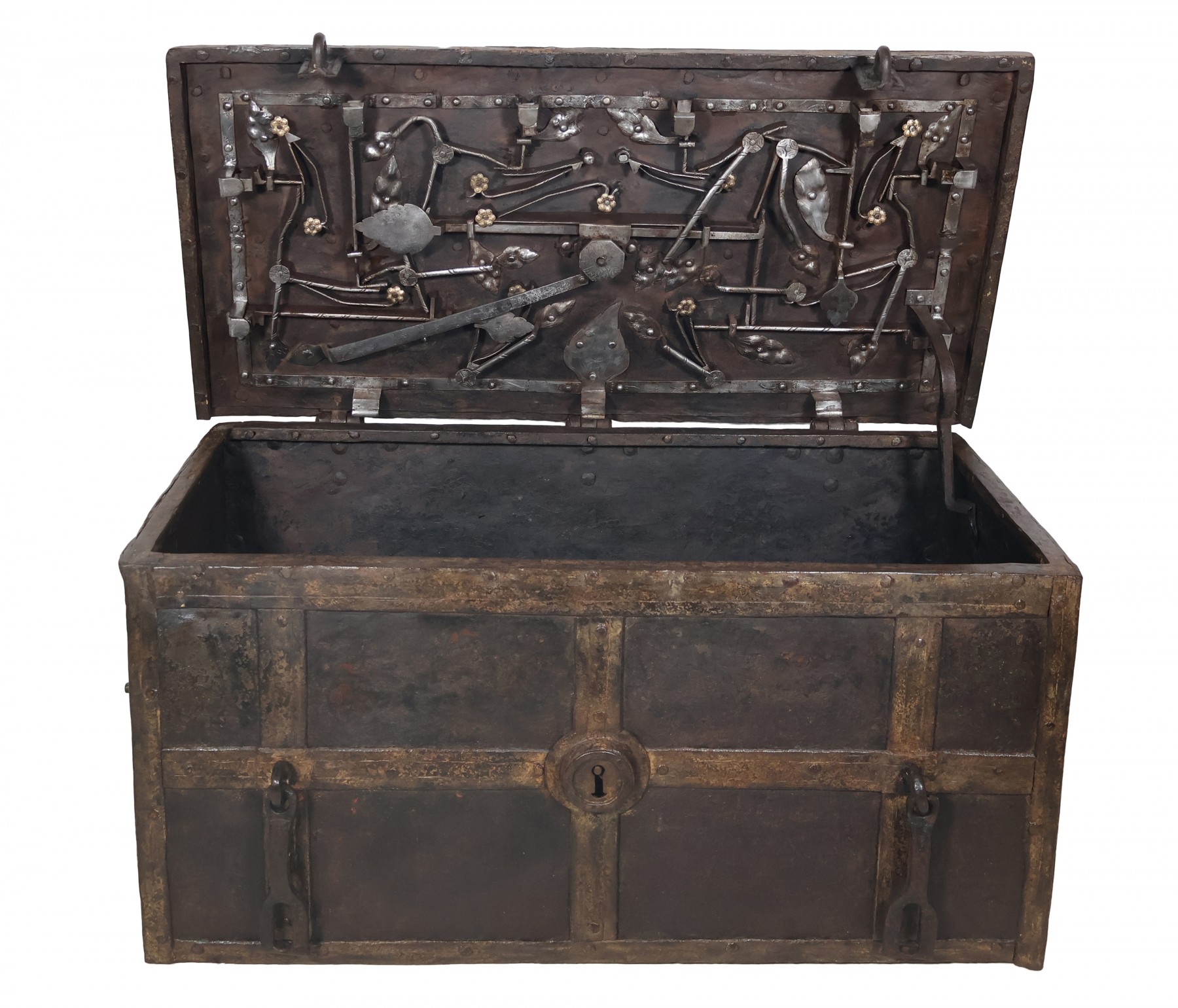 Coffre de Corsaire en fer forgé dit de Nuremberg, Allemagne, XVIIe siècle.