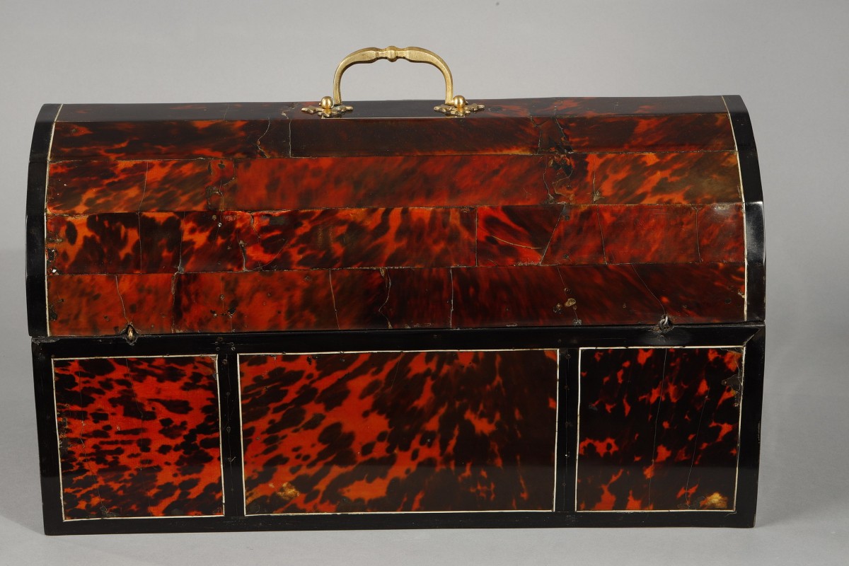 Retrouver le mobilier ou les objets d''art similaires à « Coffret flamand en écaille de tortue, fin XVIIe siècle » présenté par Galerie Gilles Linossier, antiquaire à Paris dans la catégorie Coffret & Nécessaire Louis XIV, Objets de Vitrine.