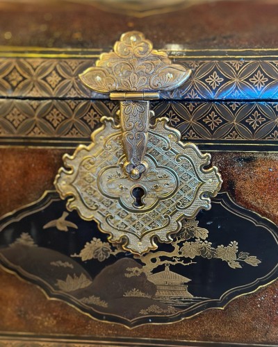 Les côtés ,la face et le couvercle sont décorés de paysages doré sur fond noir encadrés dans des réserves .