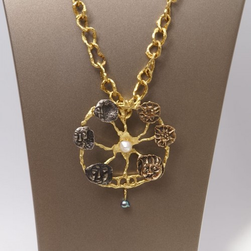 Collier "Roue" en or 18 carat, une perle noire et une perle baroque dessiné par Jean Lurçat et exécuté en 6 exemplaires par Patek Philippe à Genève, celui est numéroté 2/6