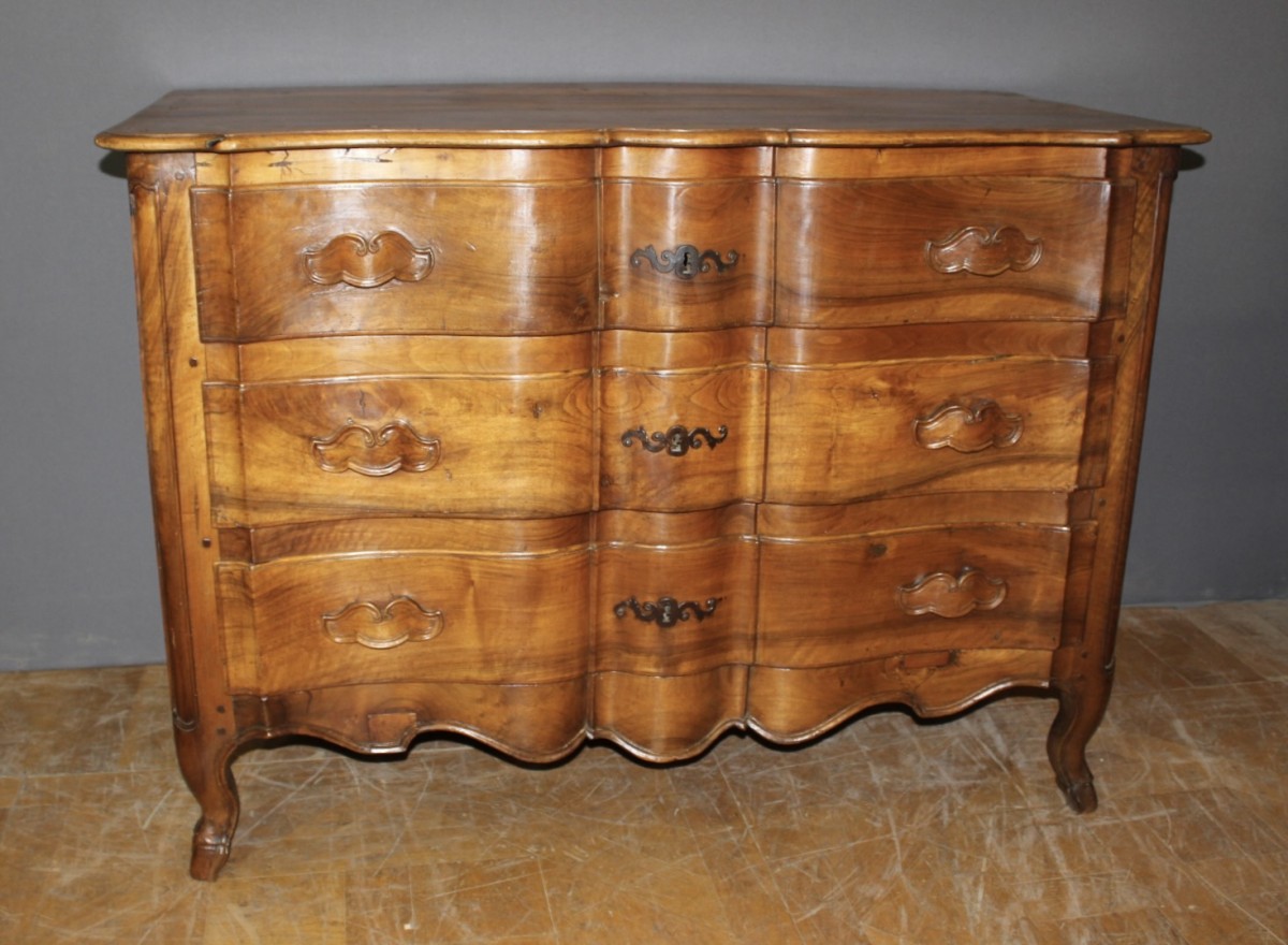 Retrouver le mobilier ou les objets d''art similaires à « Commode arbalète en noyer XVIIIe » présenté par Antiquités Christophe Rochet, antiquaire à Villeurbanne dans la catégorie Commode Louis XV, Mobilier.