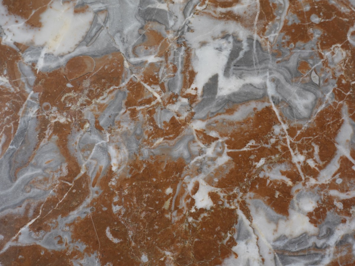Dessus de marbre ''Rouge Royal'' mouluré d'un bec-de-corbin épousant le galbe de la façade et des côtés.
