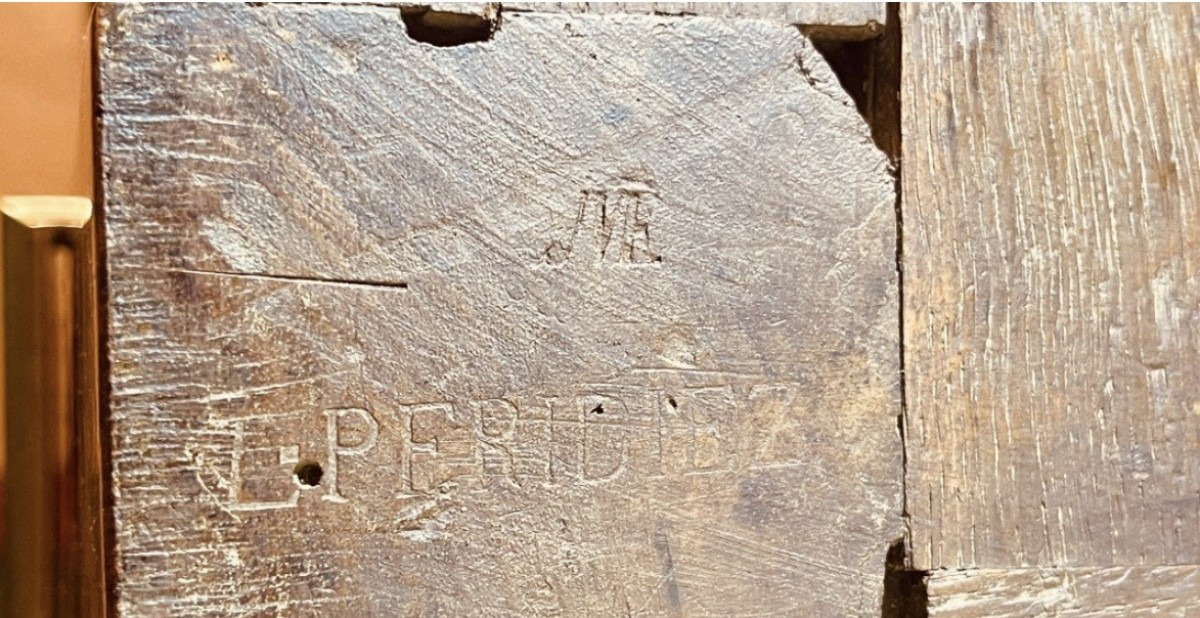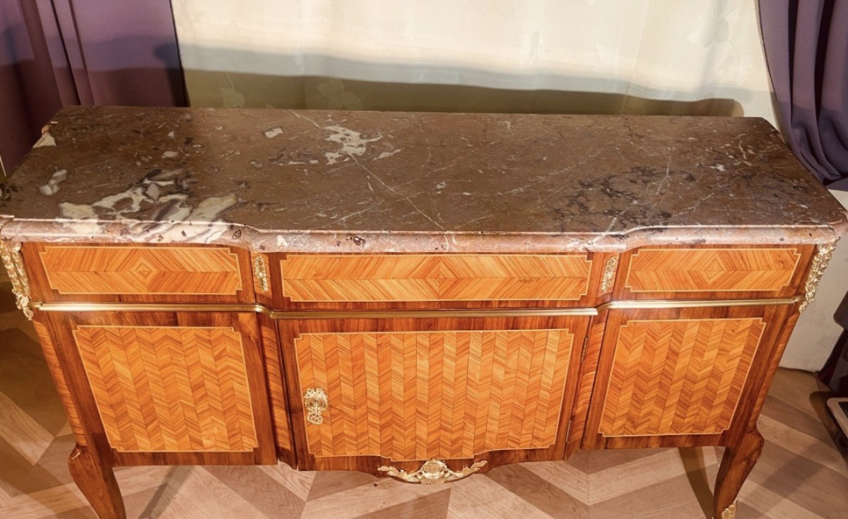 Sous les tiroirs, elle est orné d'un large filet en bronze doré tout autour.