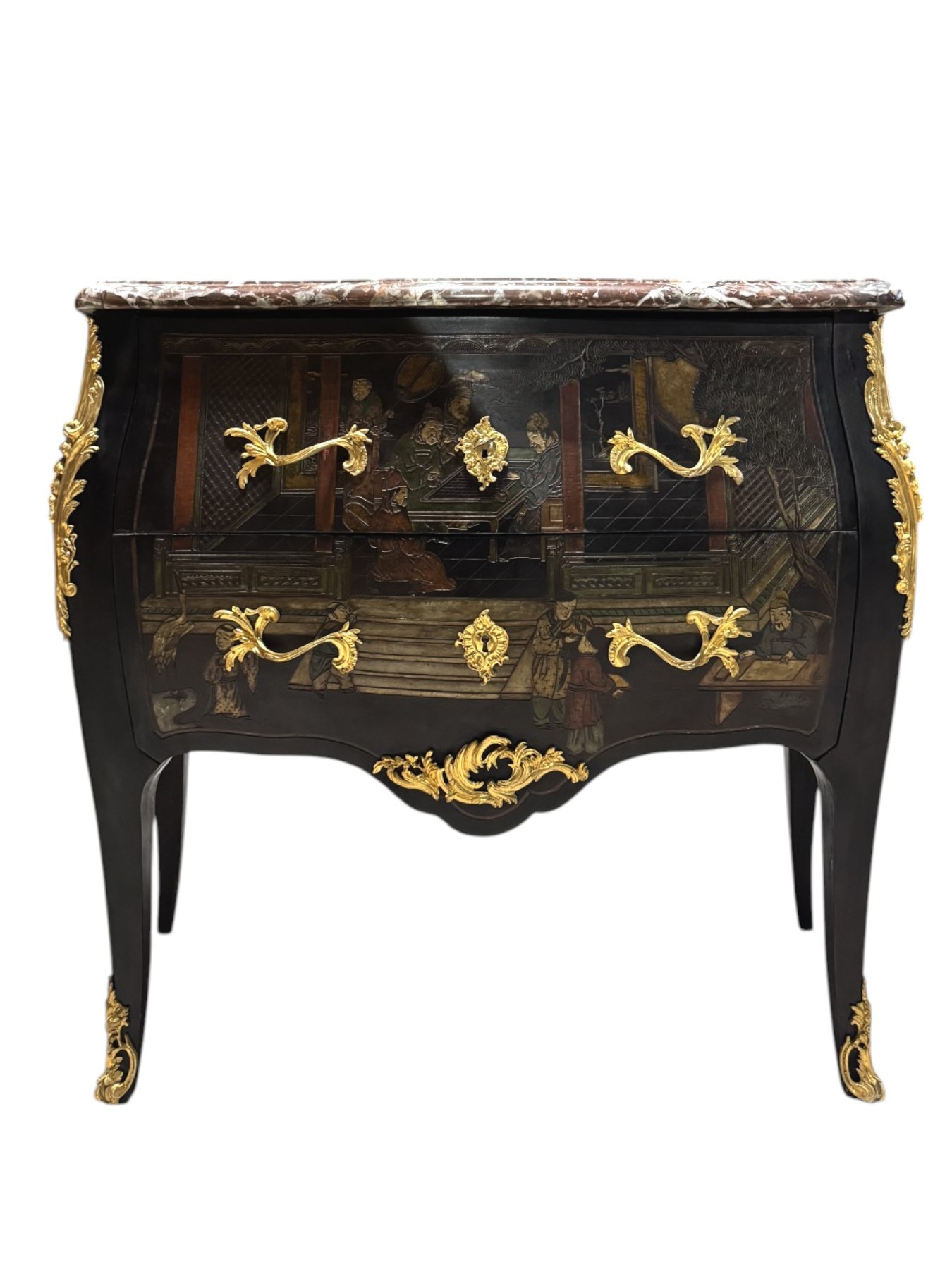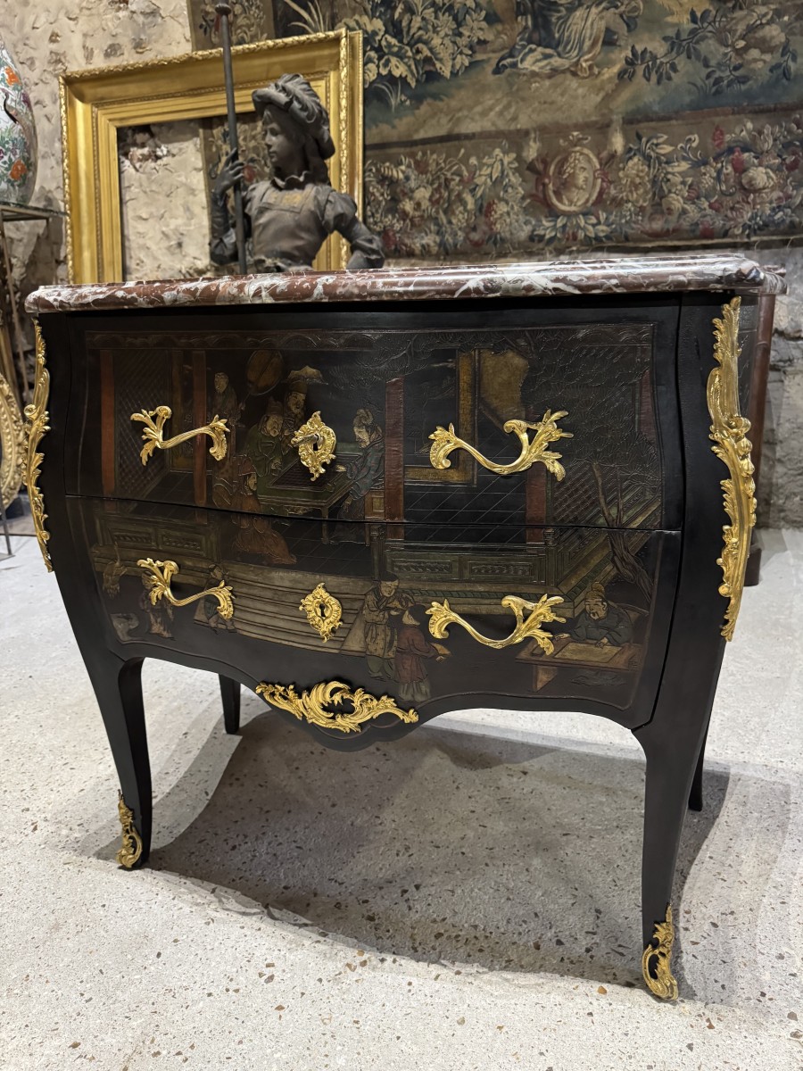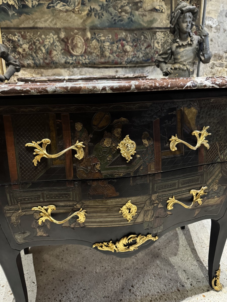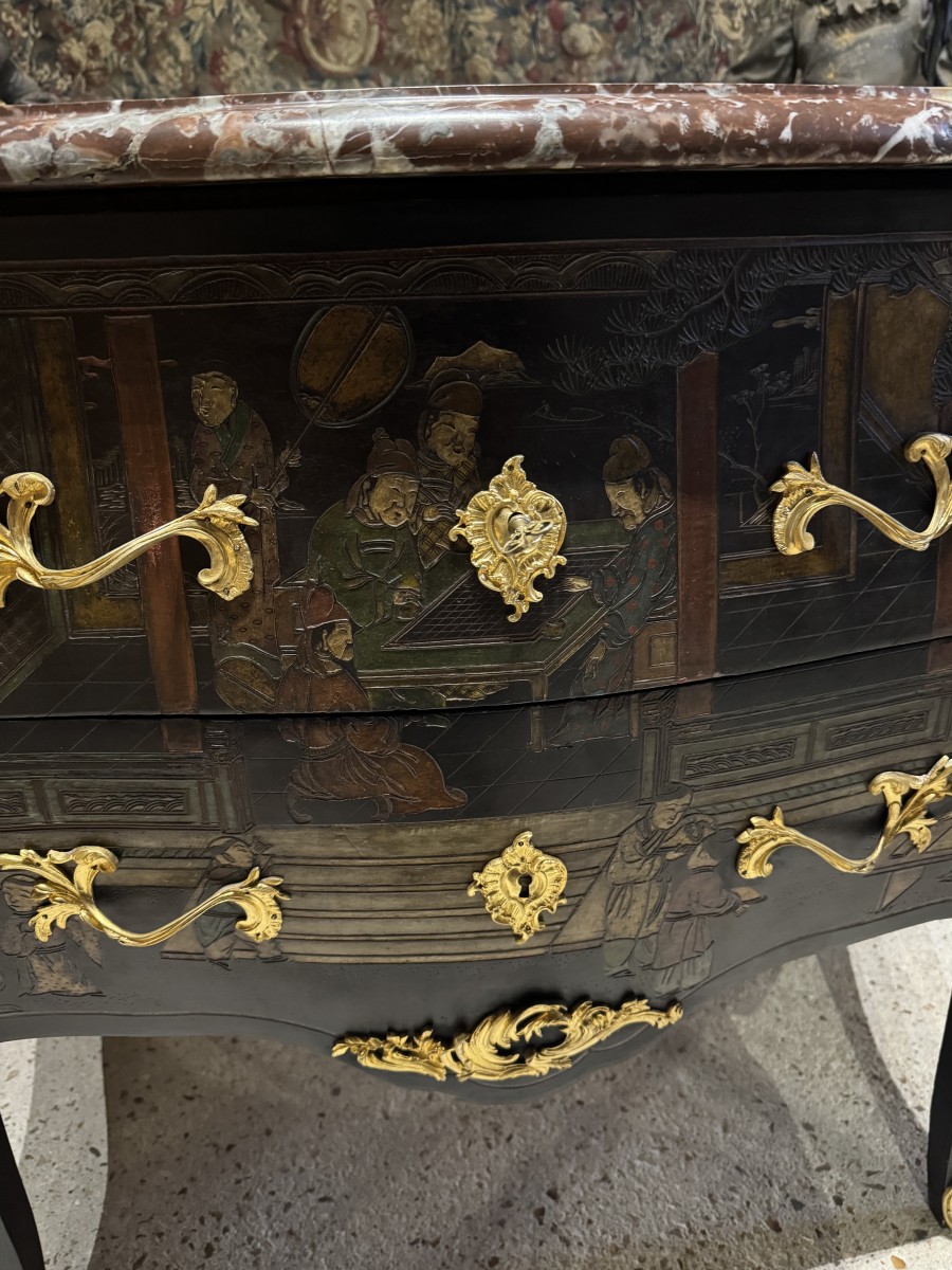 Commode en laque de coromandel et bronzes dorés d’époque Napoléon III. Style Louis XV