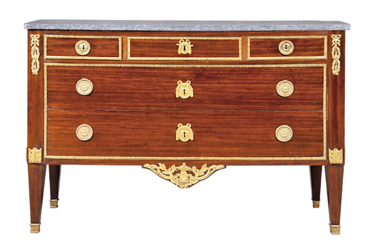 Retrouver le mobilier ou les objets d''art similaires à « Commode Louis XVI Estampillée RVLC » présenté par Galerie Leroy, antiquaire à Remiremont dans la catégorie Commode Louis XVI, Mobilier.
