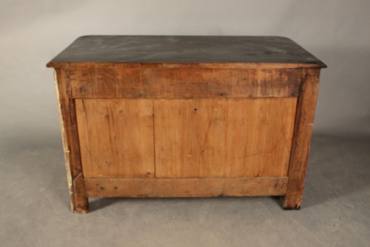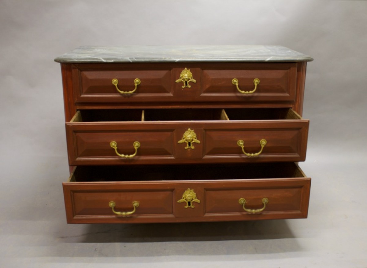 Commode d'époque Louis XIV, panneautée sur les cotés, à dessus faux marbre peint.