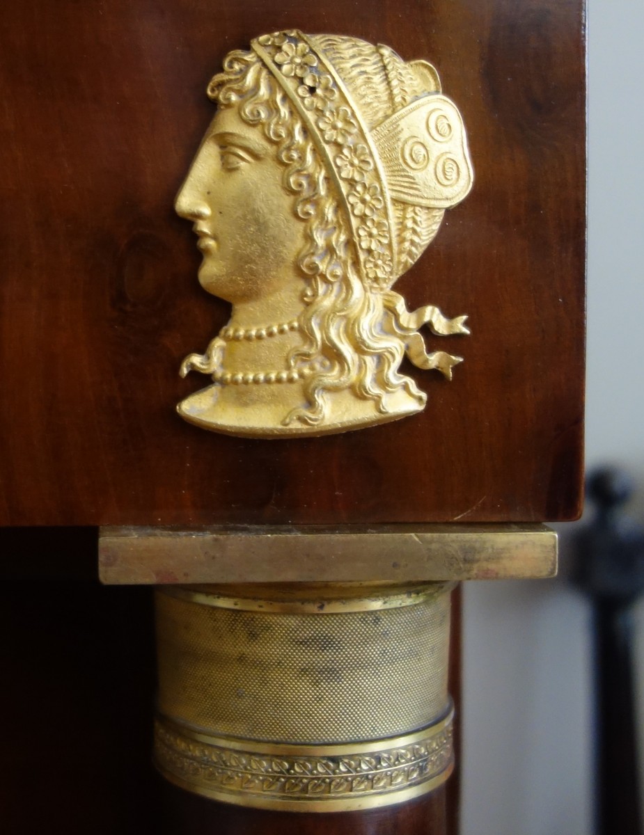 Meuble de luxe digne d'un dignitaire de l'Empire, il s'associe bien avec les autres objets présentés sur les dernières photos : chaises de Fontainebleau, pendule et bougeoirs de modèles crées pour Fontainebleau.