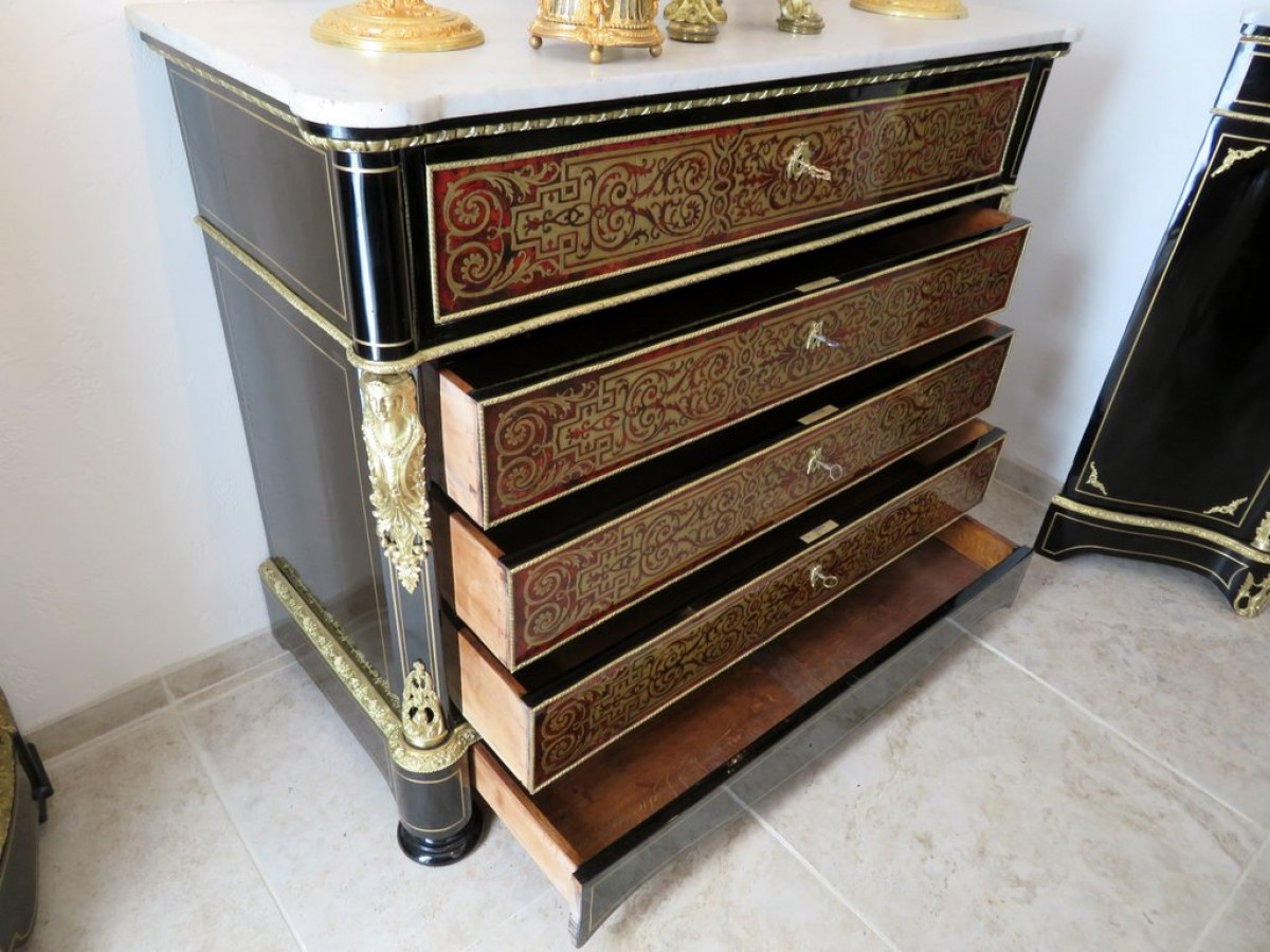 Retrouver le mobilier ou les objets d''art similaires à « Commode Secrétaire en marqueterie Boulle fin 19e » présenté par Antiquités Biau, antiquaire à Manduel dans la catégorie Commode Napoléon III, Mobilier.